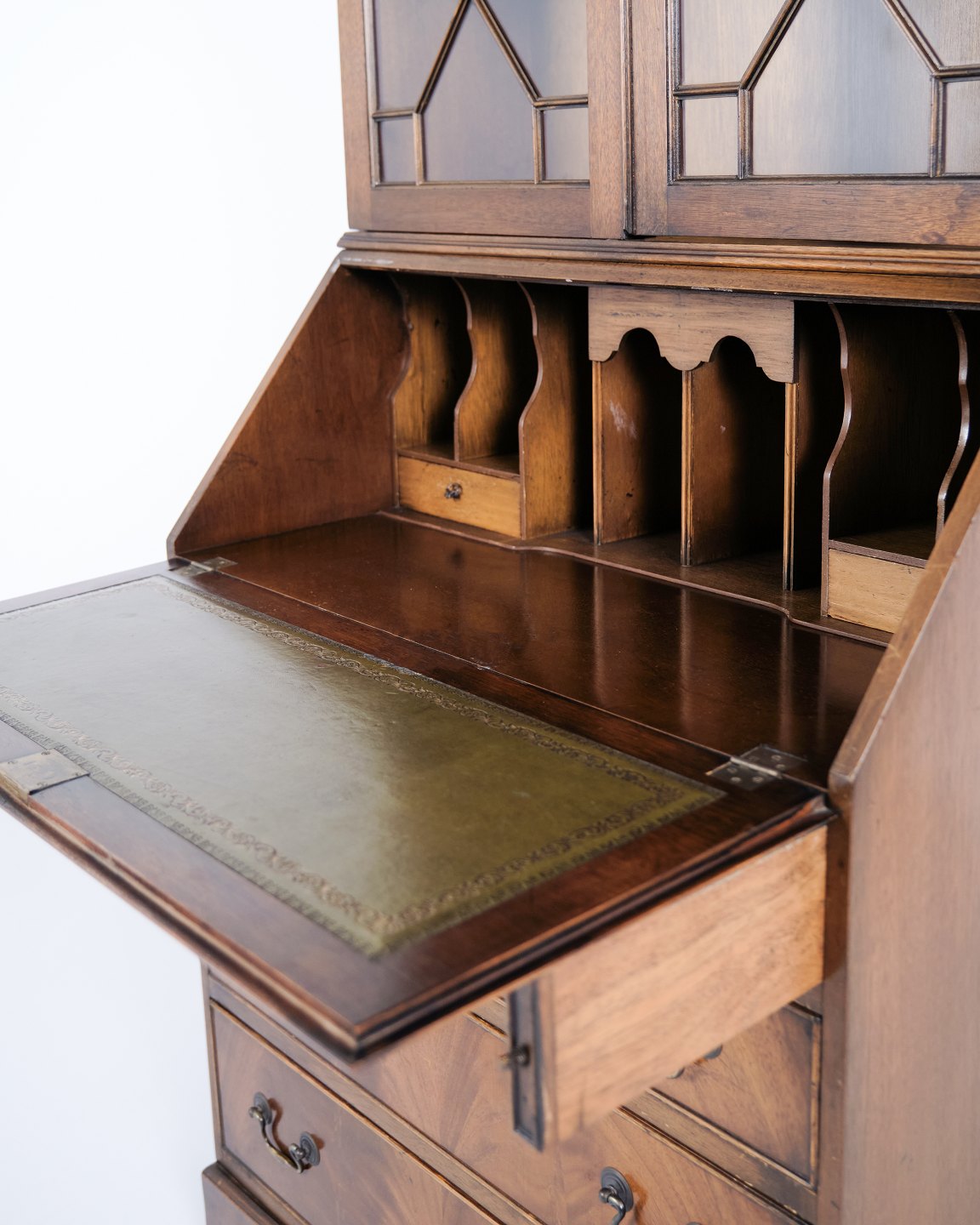 Sekretær med Skriveklap og Vitrine i Mahogni, Engelsk Stil år 1890