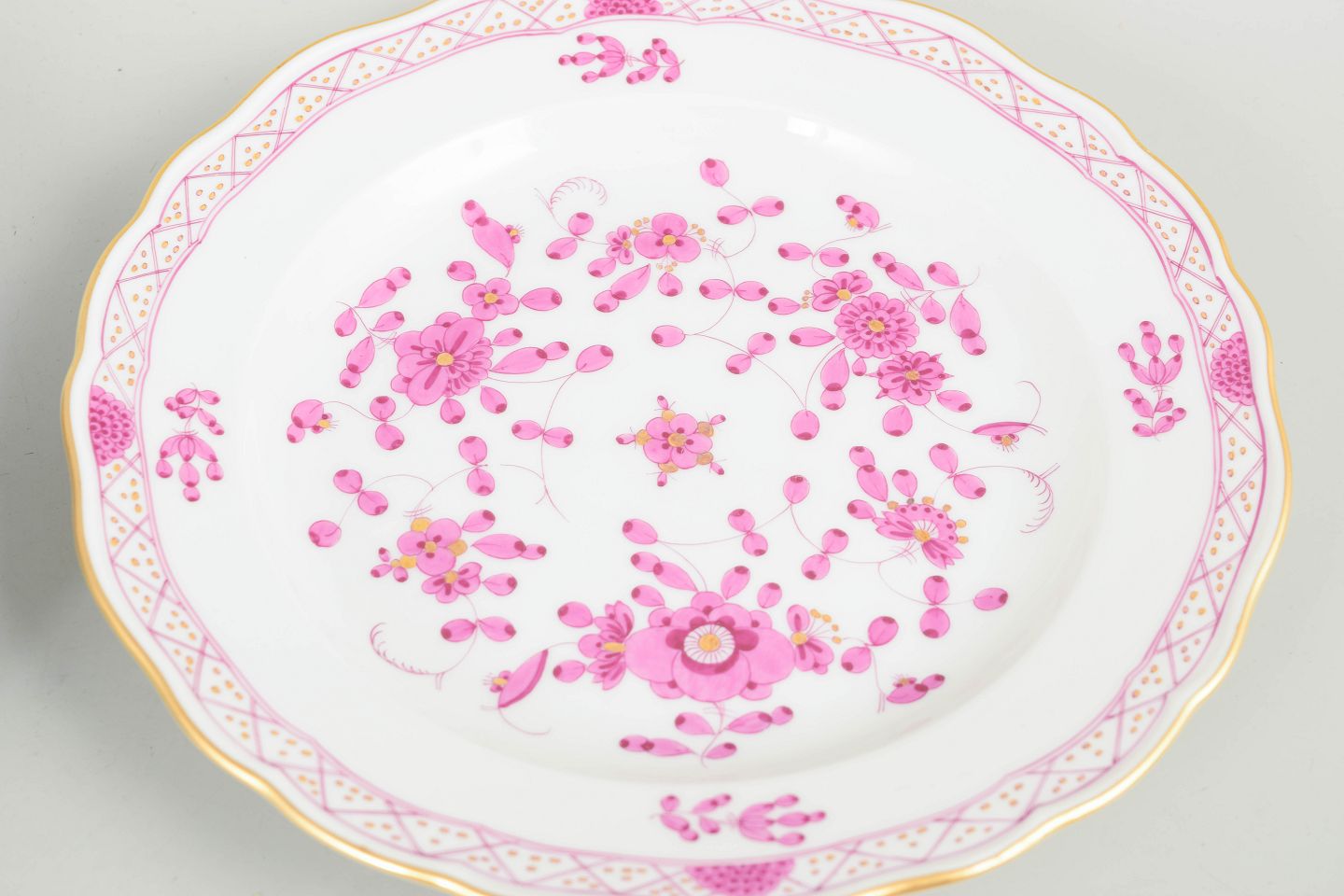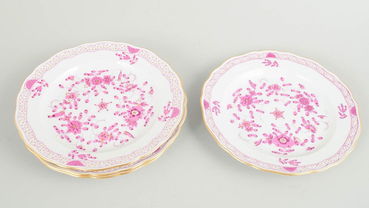 Meissen, "Pink Indian flower" sæt på fire frokosttallerkener.