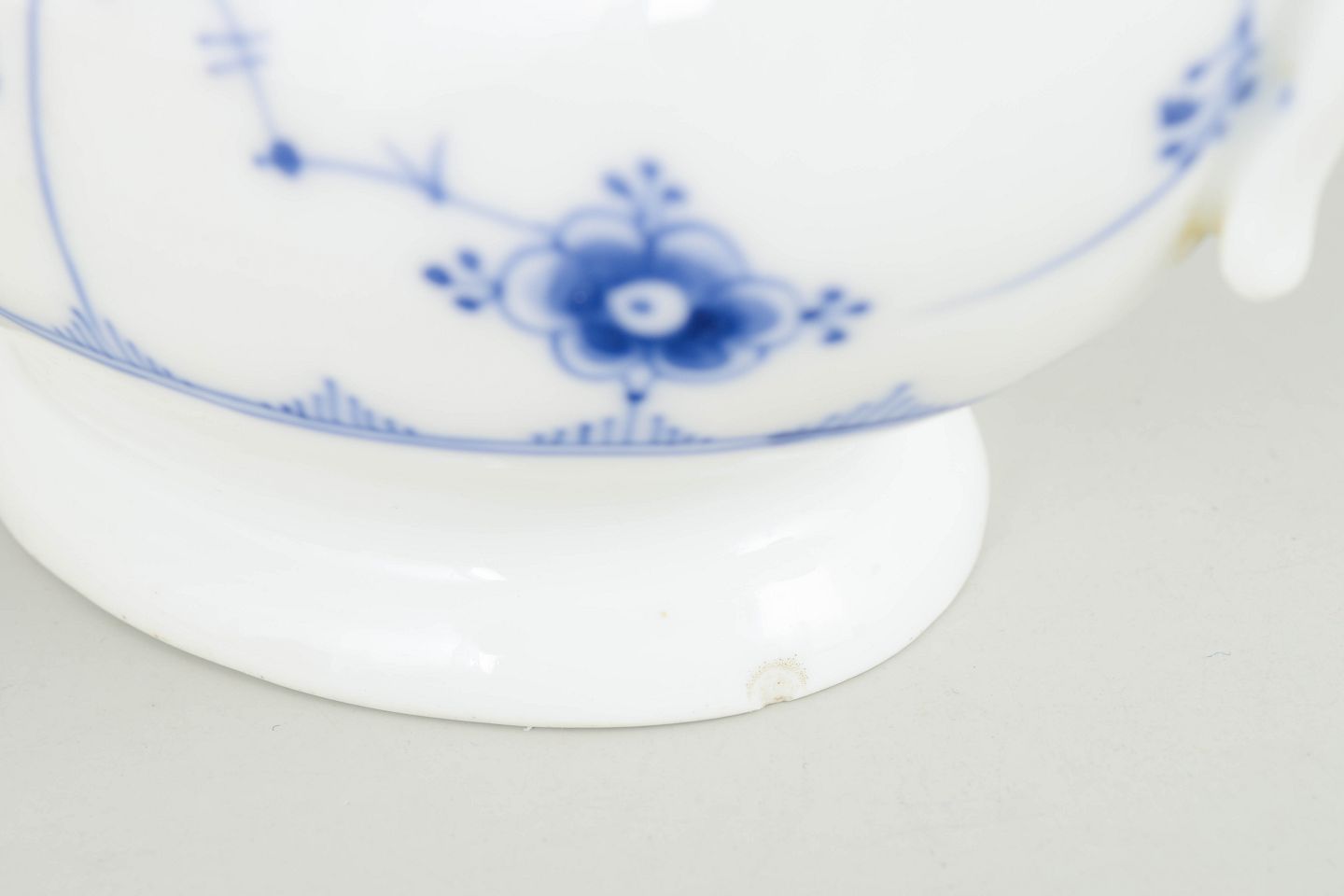 Sauceskål i håndmalet porcelæn fra Musselmalet Riflet med klassisk underglasurdekoration i koboltblå. Model 1/407. Første sortering. Fremstillet i 1920’erne. Mindre afslag ved foden, se foto.