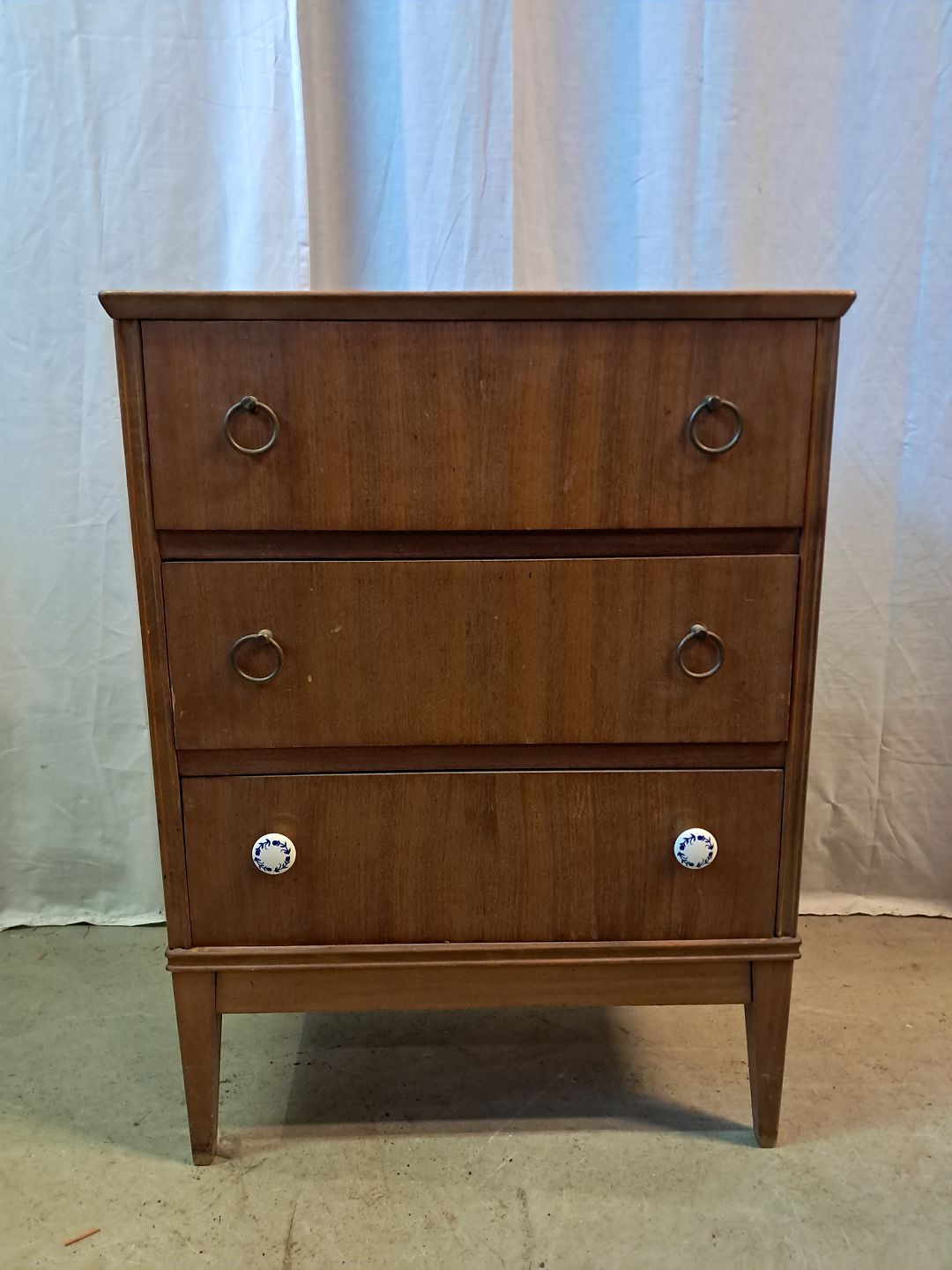 Kommode i fineret nødetræ, fra 1950erne.