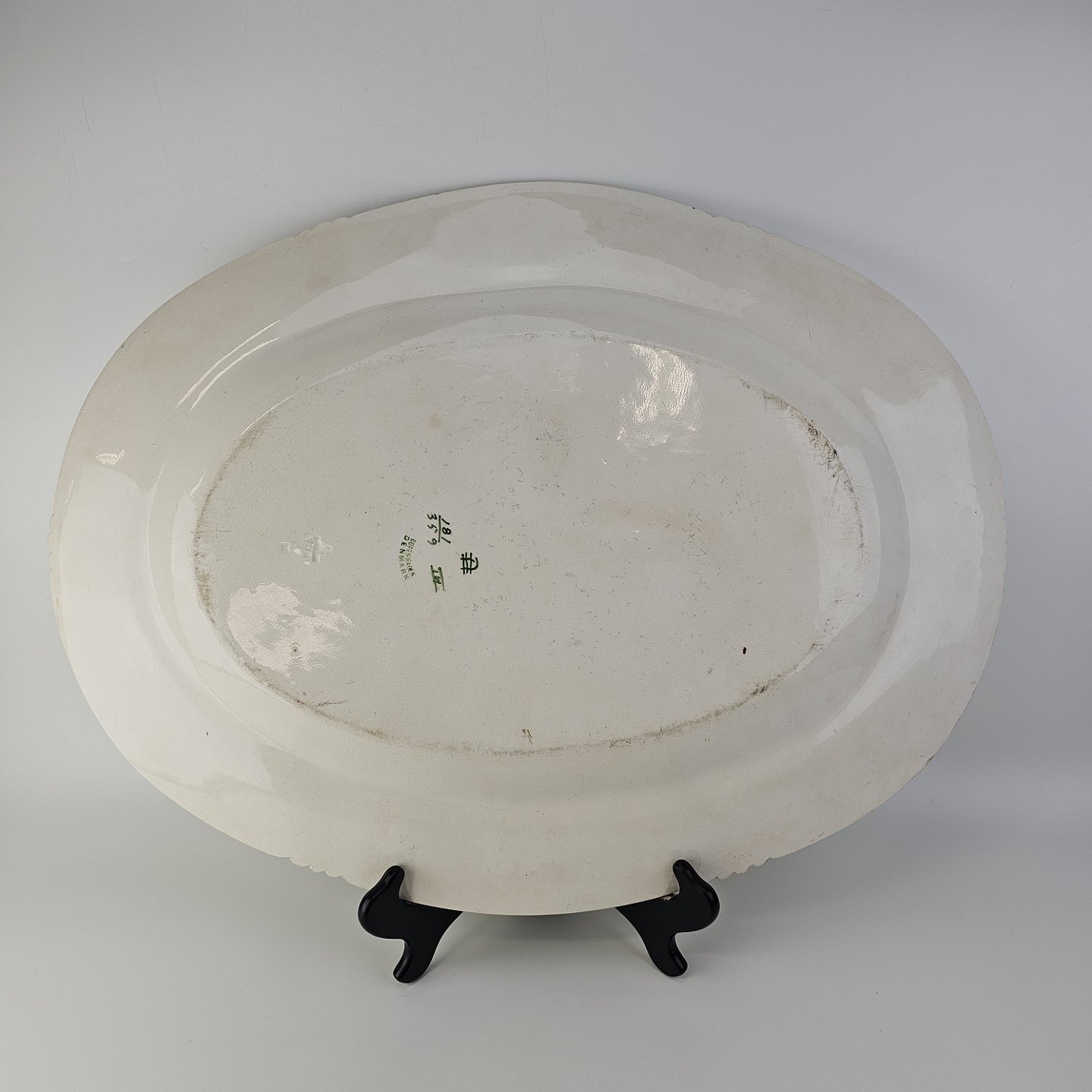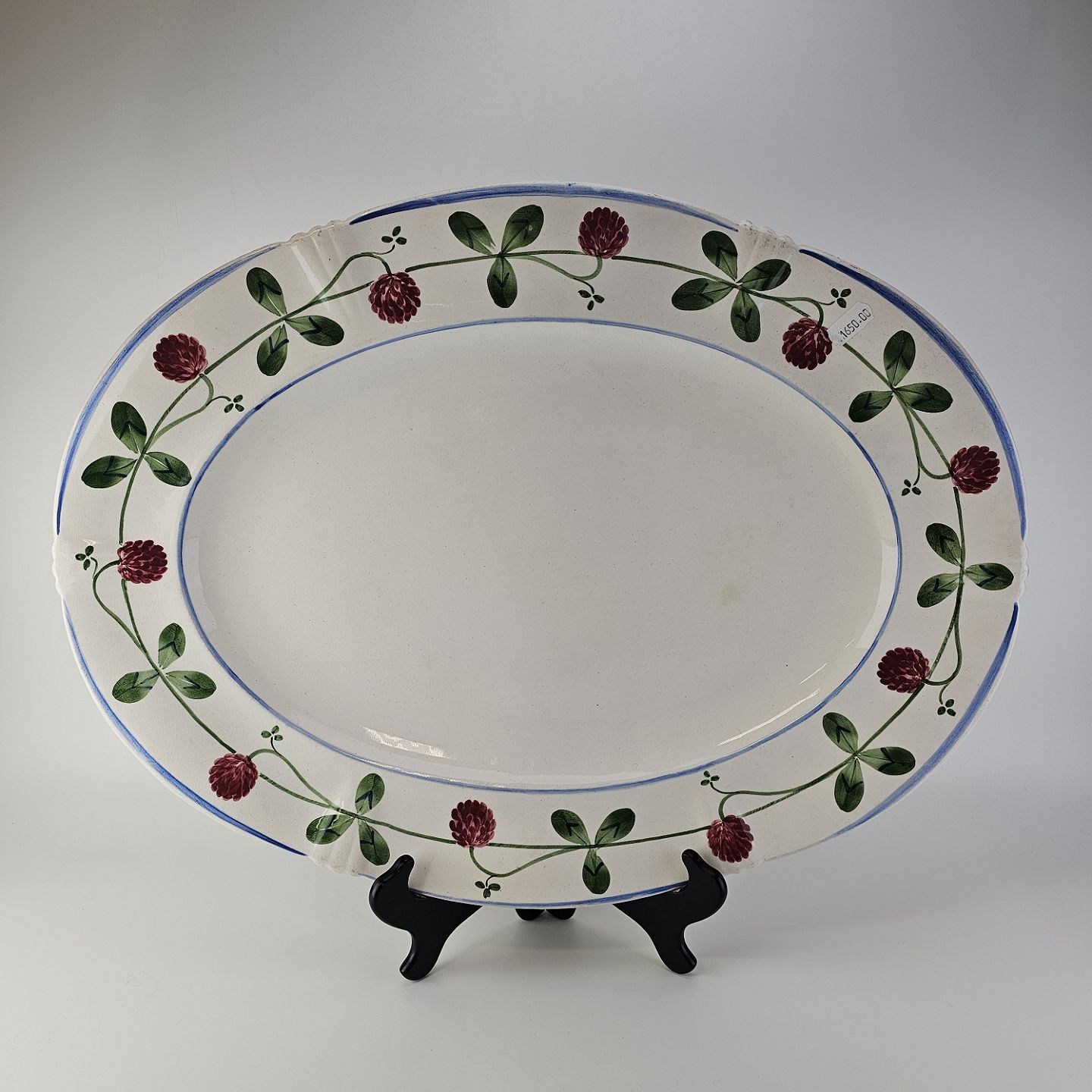 Ovalt fad i kunstfajance fra stellet Kløver. Nr. 181/359