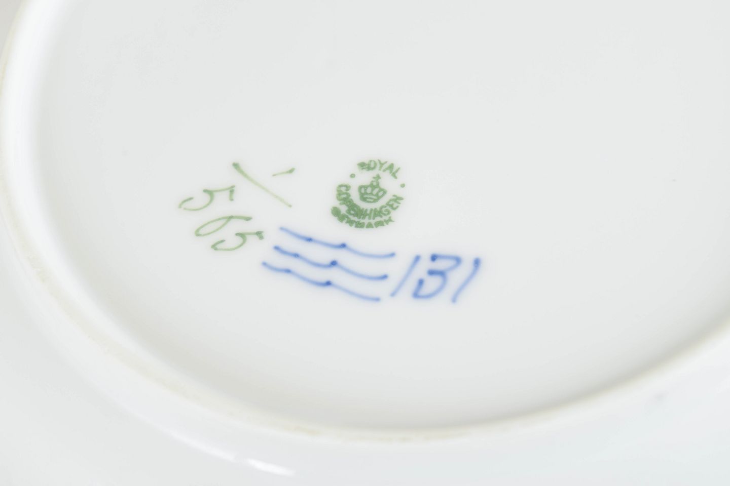 Royal Copenhagen blev grundlagt i 1775 i København under kongelig bevilling. Fabrikken er internationalt anerkendt for sit håndmalede porcelæn og sit høje kunstneriske niveau. Musselmalet Halvblonde er en variation af det klassiske Musselmalet stel og kombinerer riflede flader med en dekorativ blondekant, udført med stor håndværksmæssig præcision.