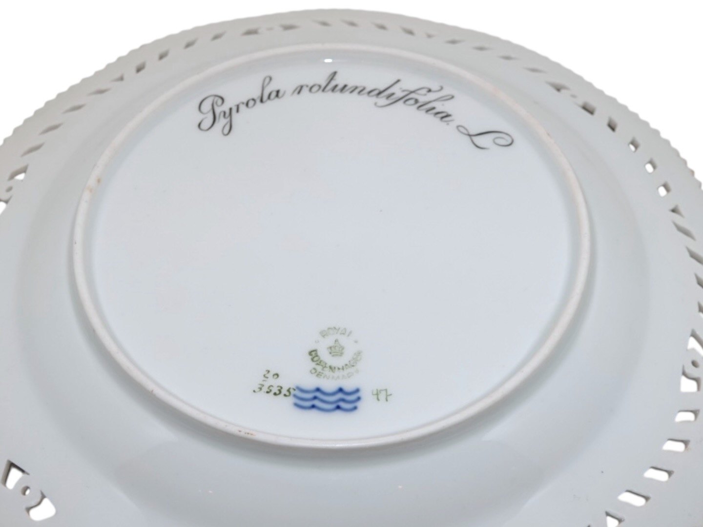 Royal Copenhagen Flora Danica, middagstallerken / underfad til frugtskål med gennembrudt kant.