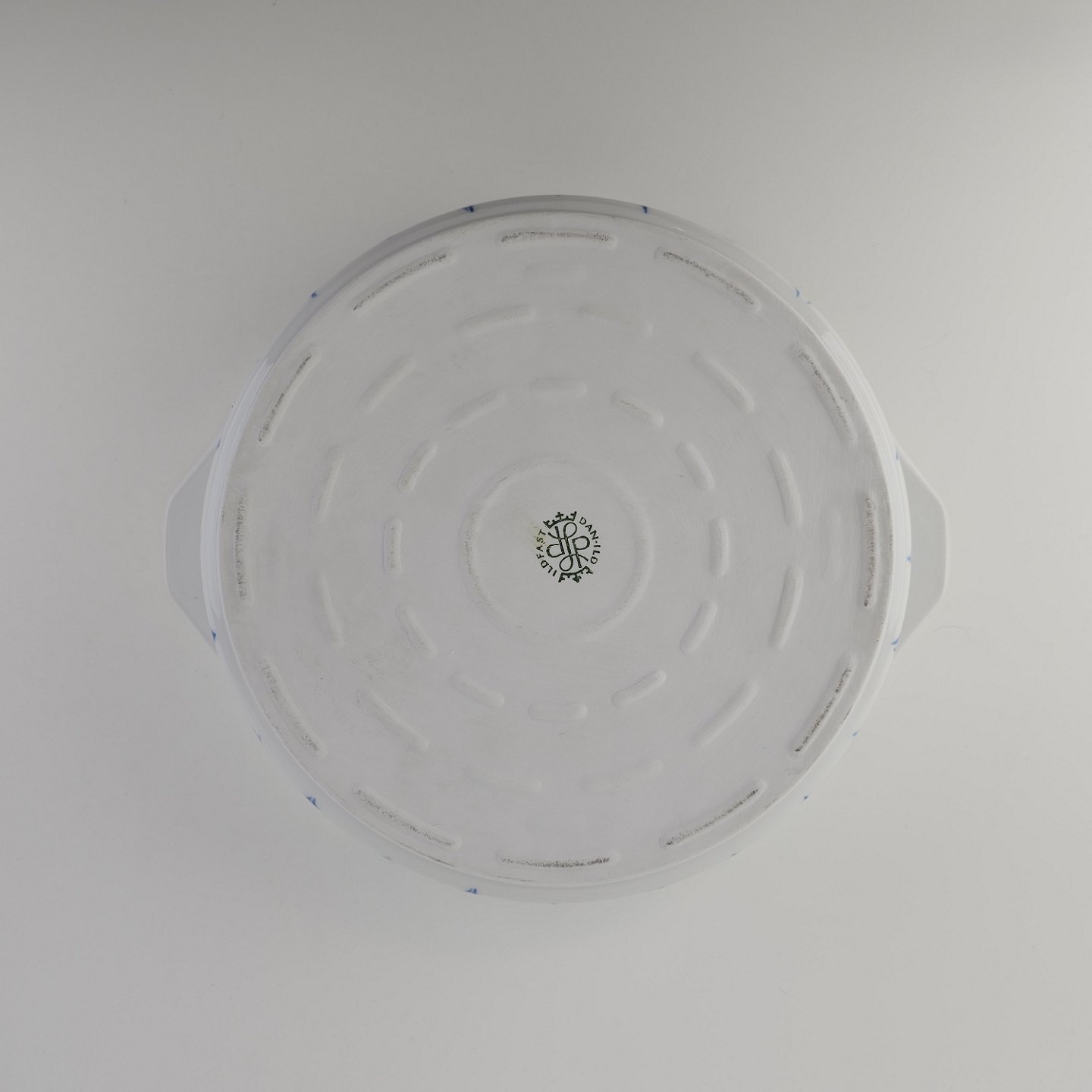 Blå Flamme er hvidt ildfast porcelæn dekoreret med blå striber, der ligner flammer.