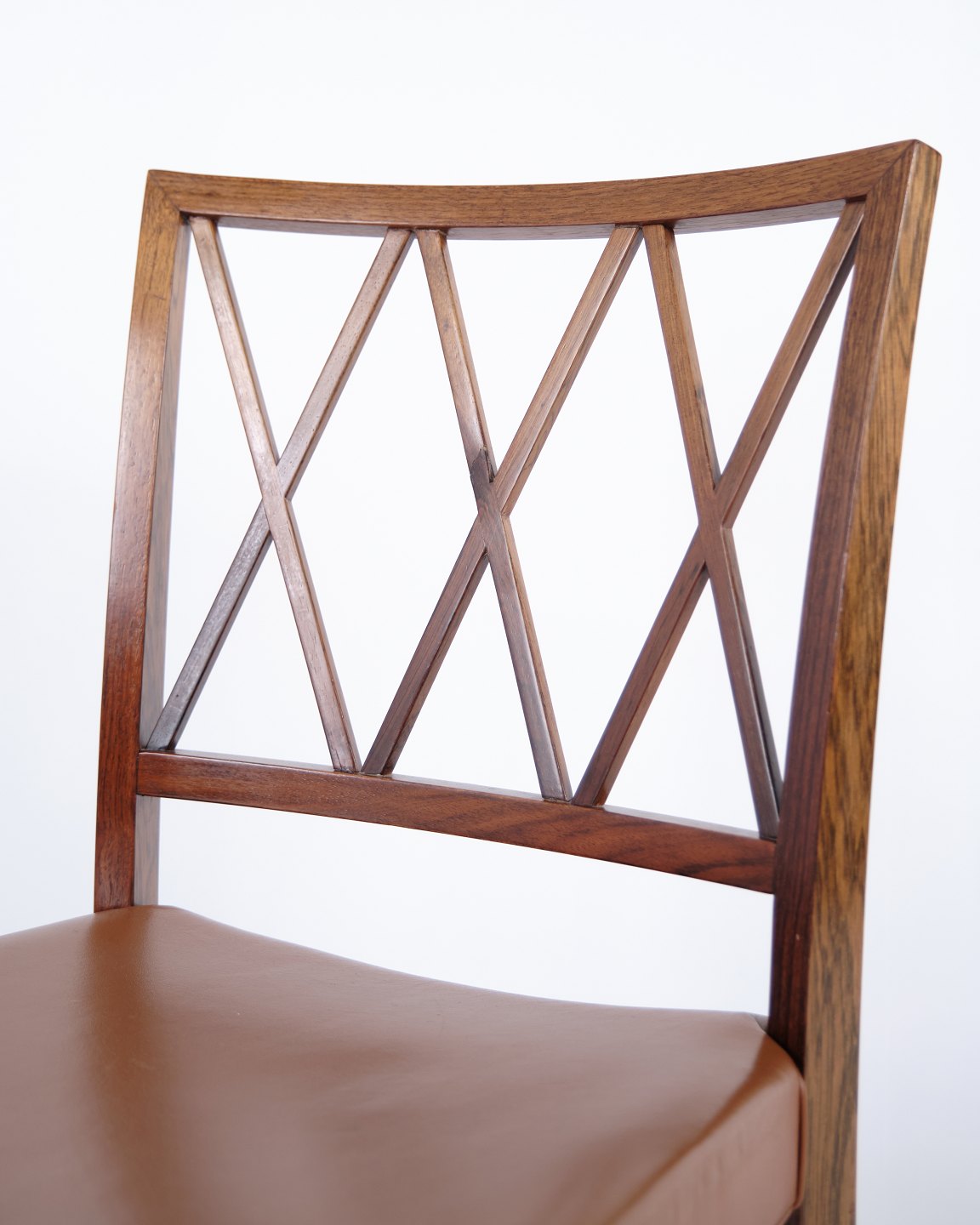 Sæt af otte spisebordsstole i palisander designet af Ole Wanscher for Slagelse Møbelværk. Dansk design fra 1950’erne med klassisk og elegant formsprog.