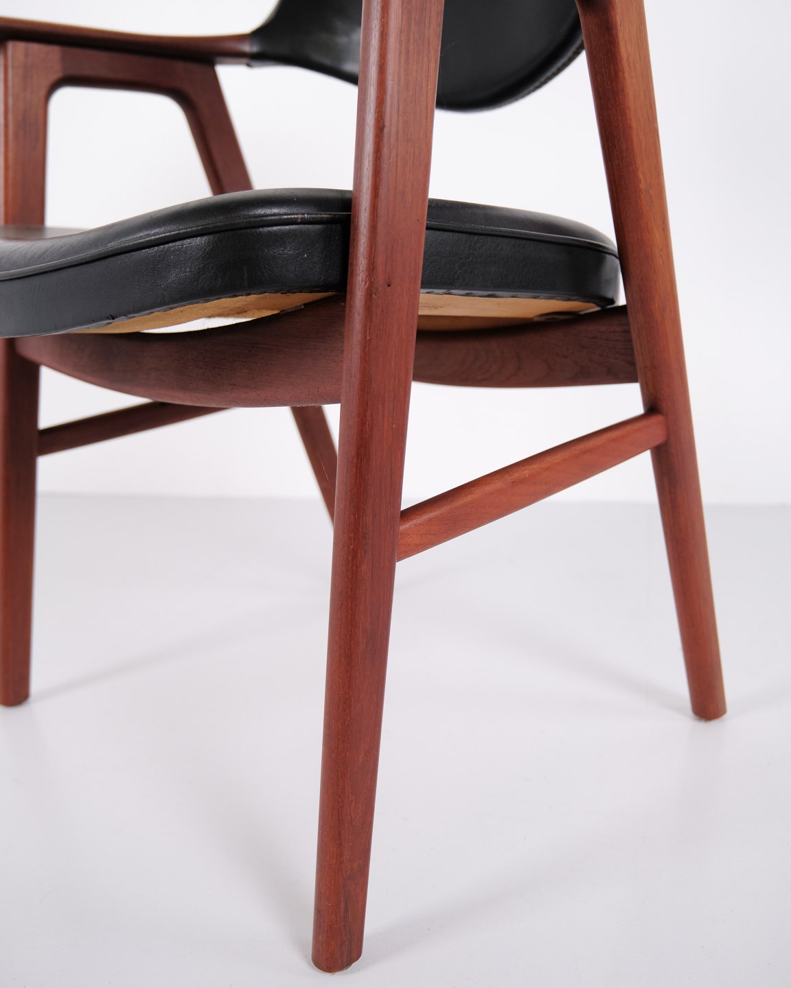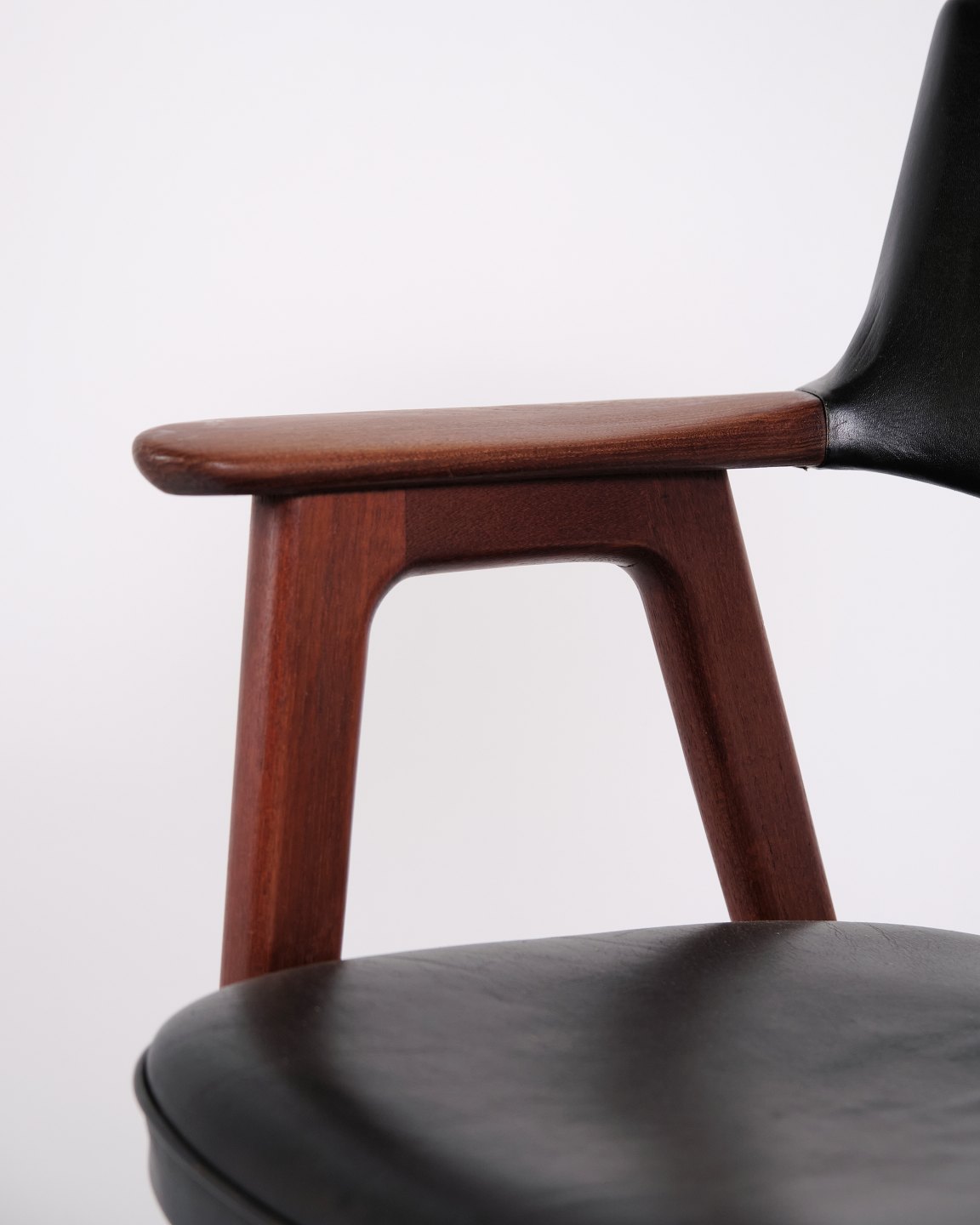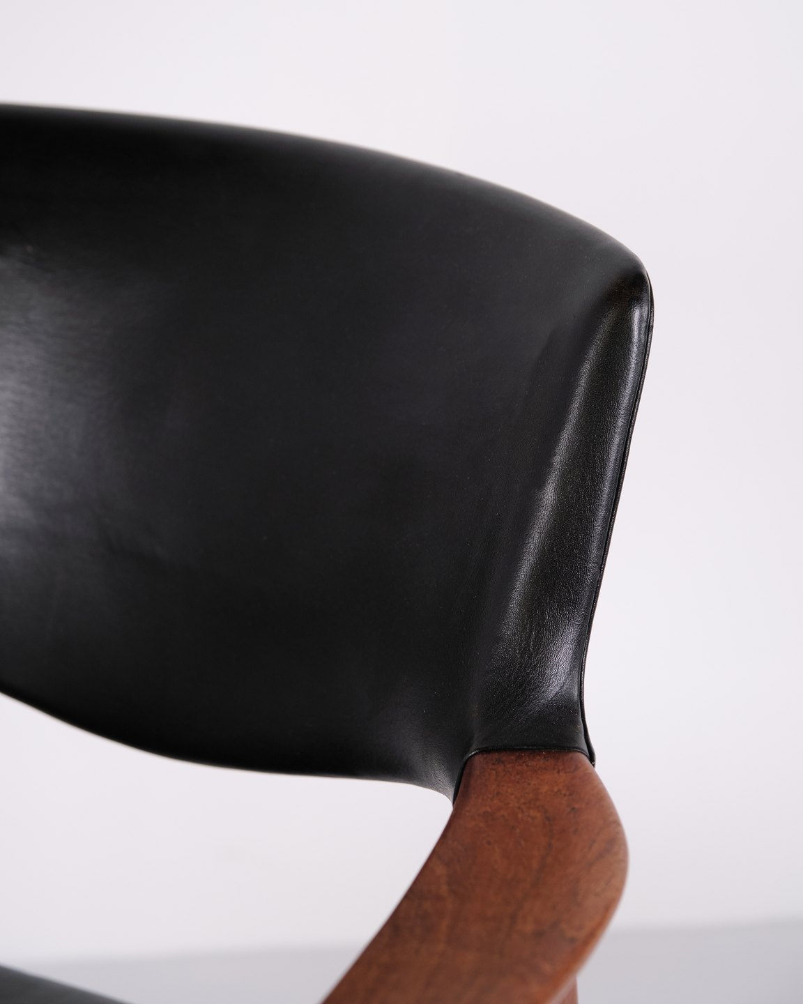 Erik Kirkegaard Armstol Model 43 i Teak og Sort Læder, Høng Stolefabrik 1950erne