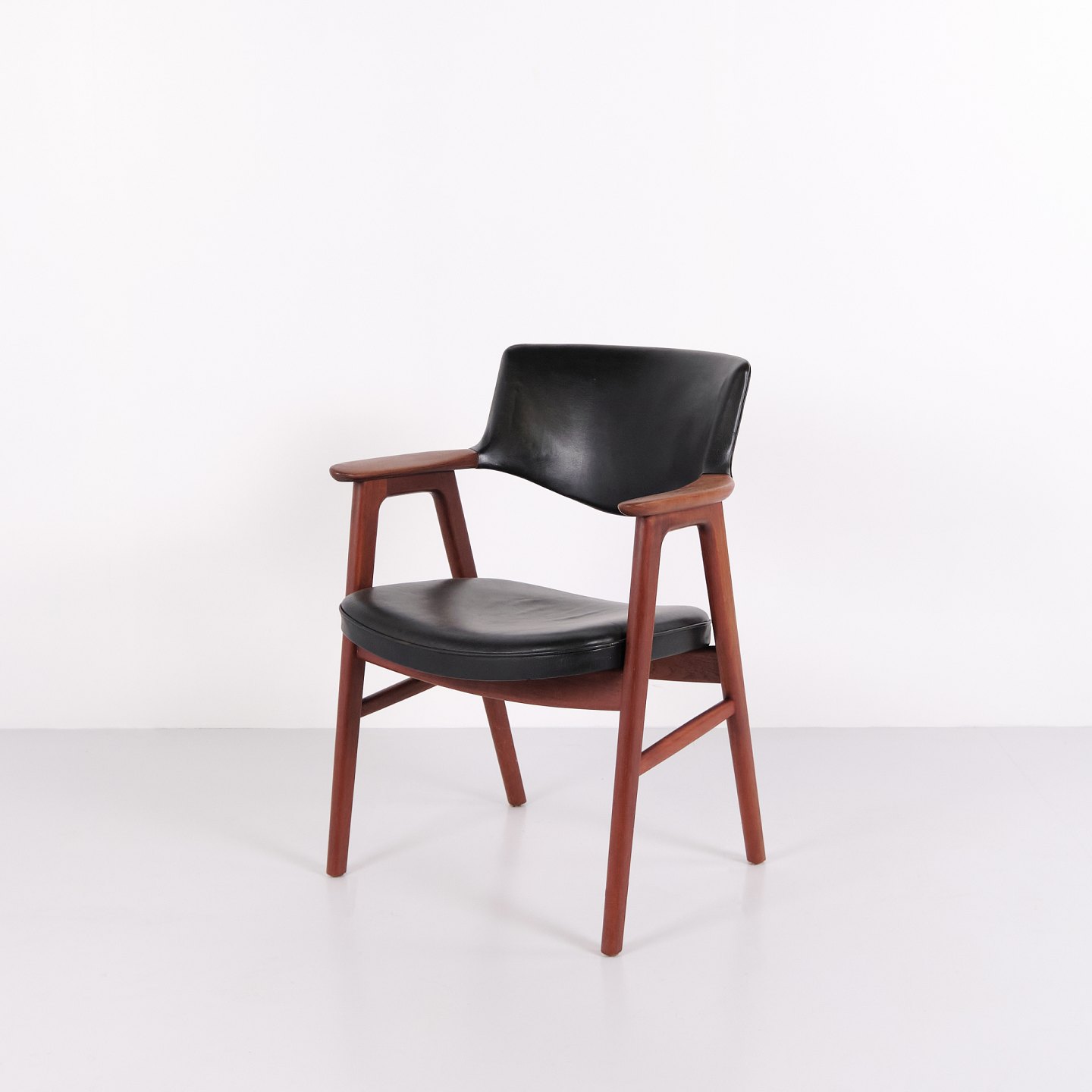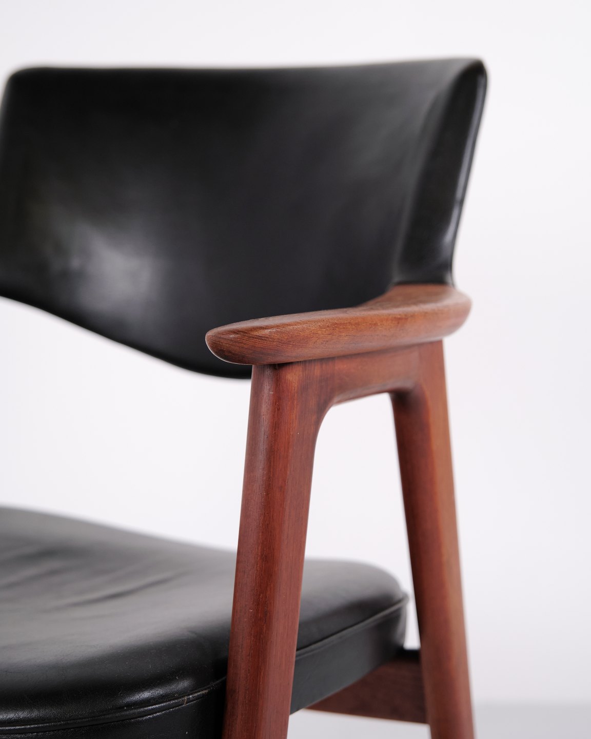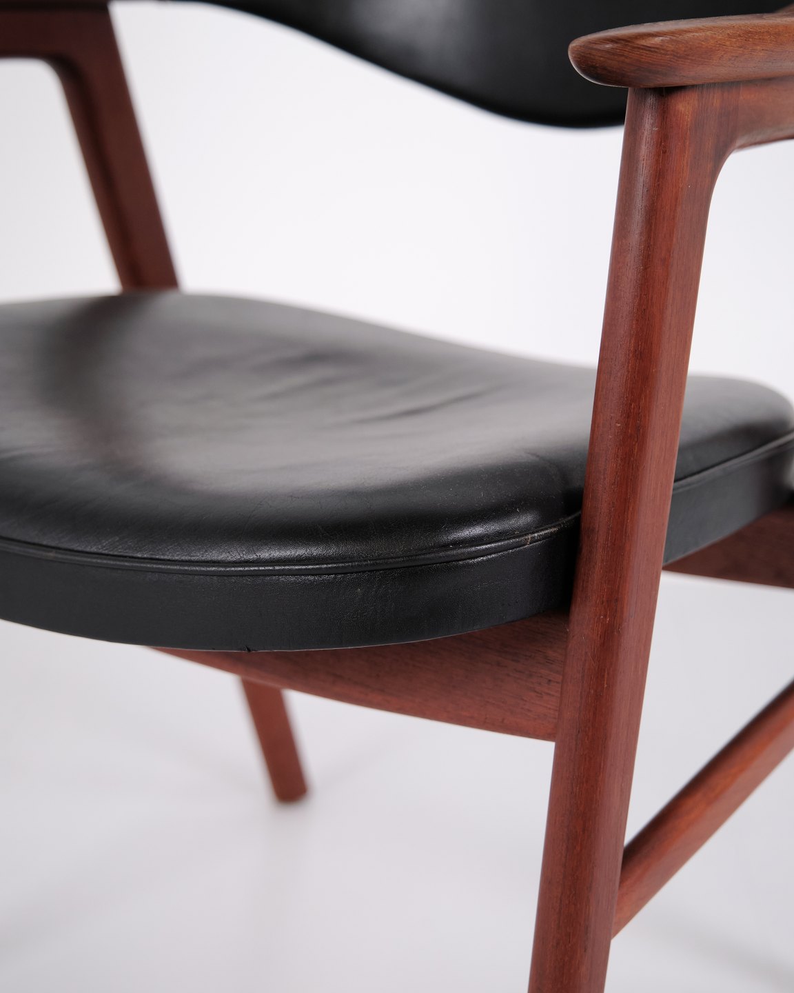 Erik Kirkegaard Armstol Model 43 i Teak og Sort Læder, Høng Stolefabrik 1950erne