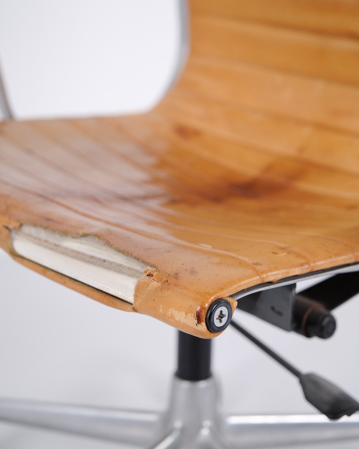 Charles Eames Kontorstol Model EA 117 i Aluminium og Cognacfarvet Læder, Vitra