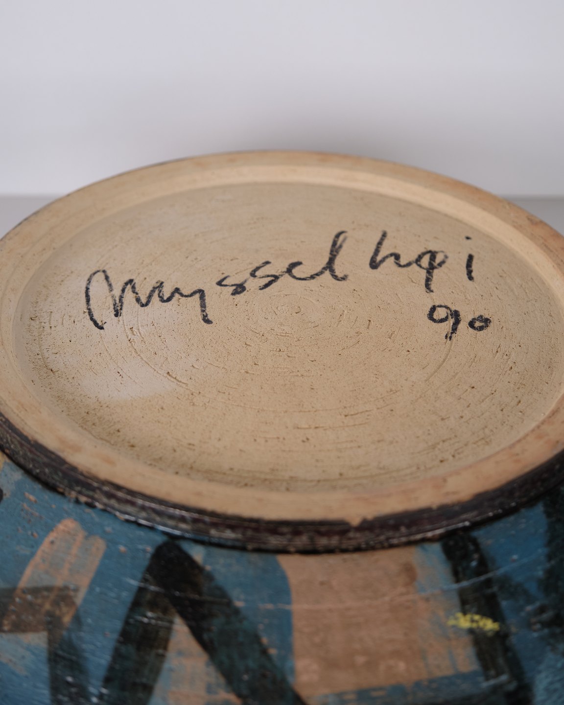 Unika keramikfad udført og signeret af keramiker Per Weiss (f. 1953) i 1990. Fadet er dekoreret i farverige nuancer med motiv af Mysselhøj, en oldtidsgravhøj beliggende ca. 1 km vest for Gammel Lejre ved Roskilde, hvor både Per og Lene Weiss tidligere har haft tilknytning. Motivet tager udgangspunkt i det historiske landskab omkring Lejre og er udført som et kunstnerisk unika arbejde.