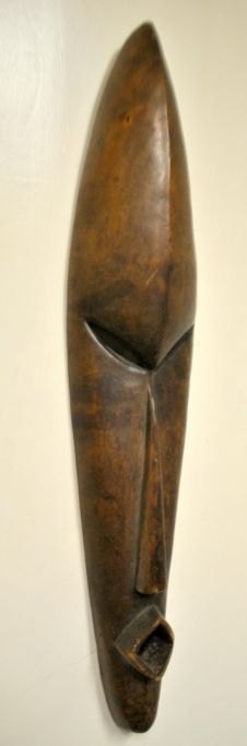 Afrikansk udskåret træmaske, start 20. årh. L: 58 cm. B: 11,5 cm.