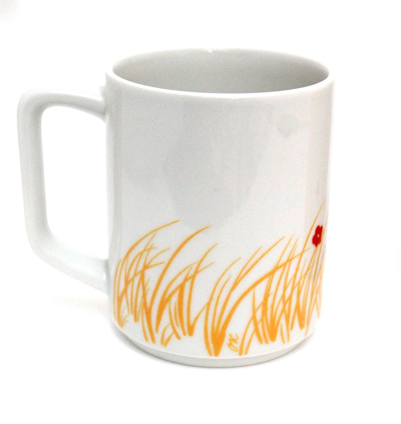 Royal Copenhagen, Picnic, Kaffekrus med gul dekoration. Designet af Grethe Meyer og Ole Kortzau. Nr. 6227. Dekoration 102. Højde 9,5 cm. Diameter 7,5 cm. Flot stand. I. sortering. Pris: 300 kr. stk. Lager: 2