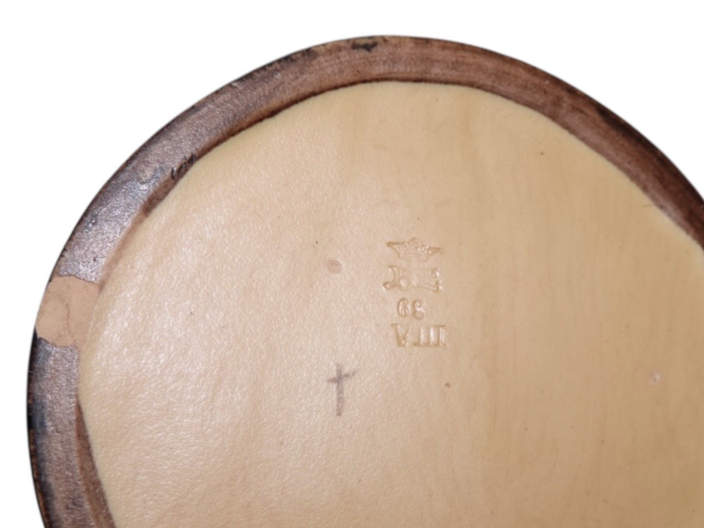 Der er et lille glasurafslag i glasuren på selve ståkanten, se sidste foto, ellers perfekt stand.