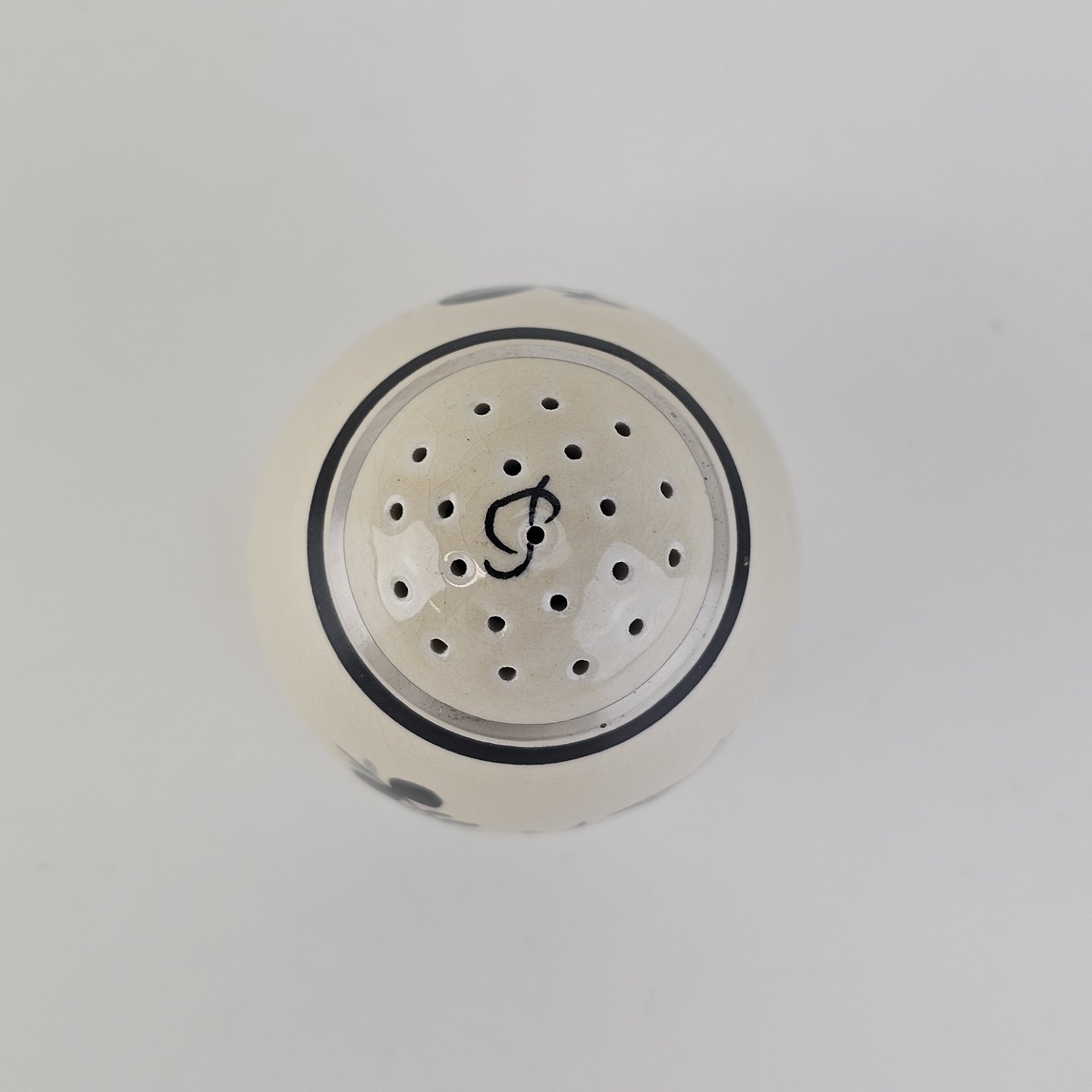 Peberbøsse i fajance fra stellet Dragsholm fremstillet i perioden 1934-1965.