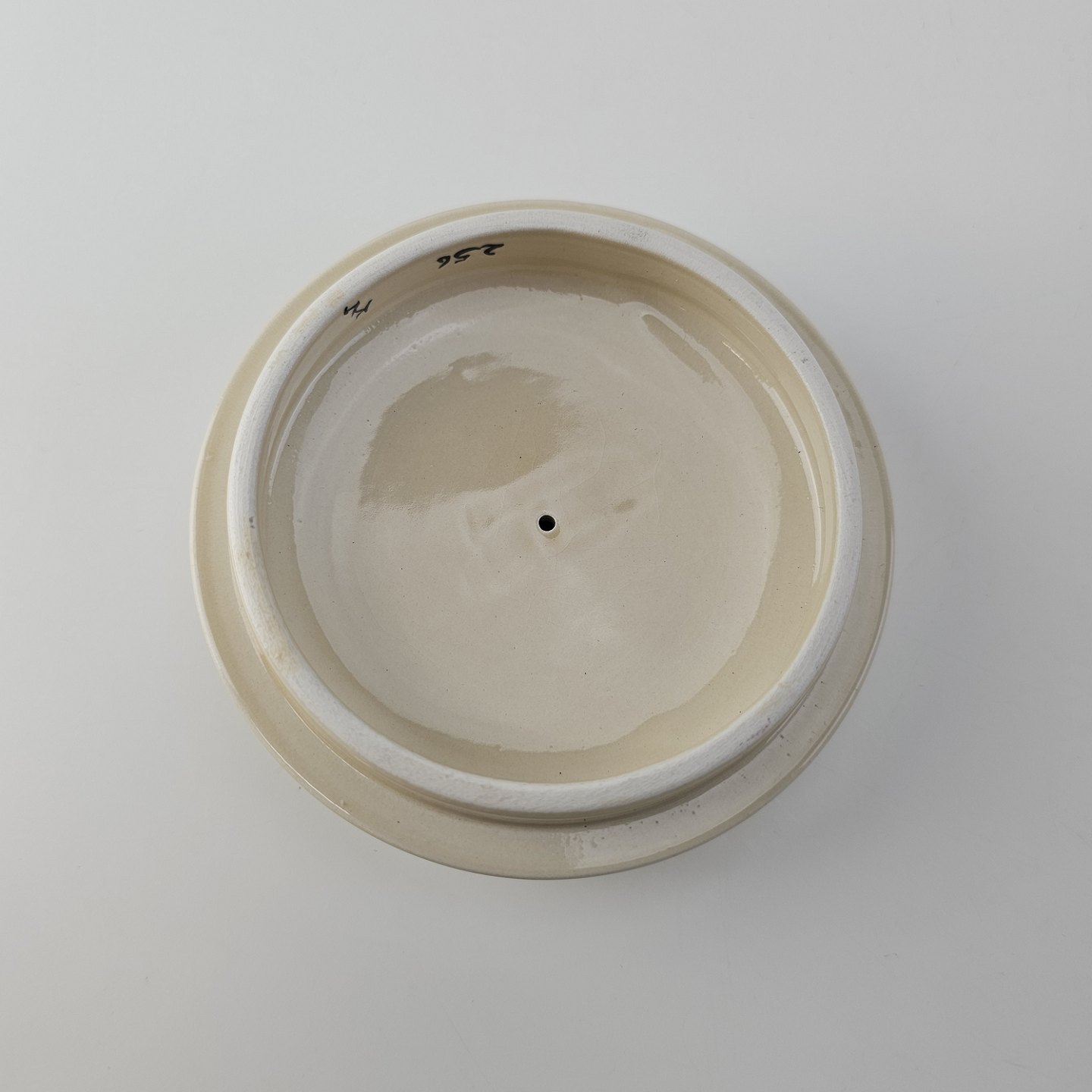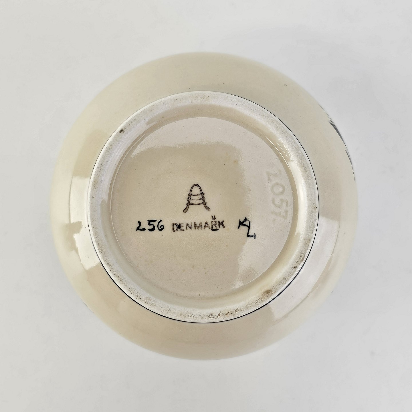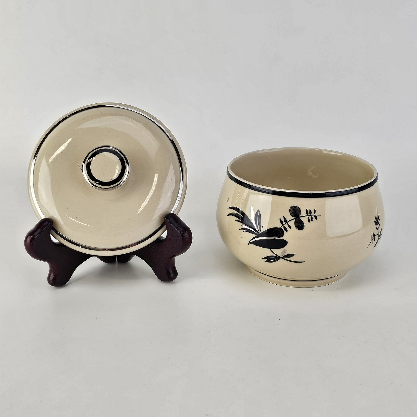 Sukkerskål med låg i fajance fra stellet Dragsholm fremstillet i perioden 1934-1965.