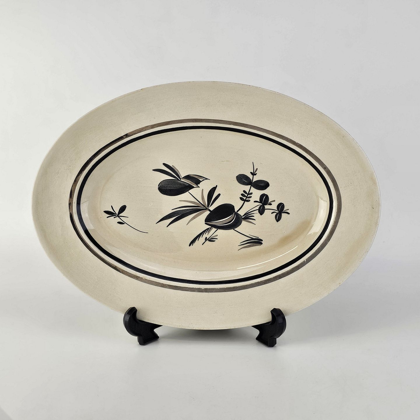 Ovalt fad i fajance fra stellet Dragsholm fremstillet i perioden 1934-1965.