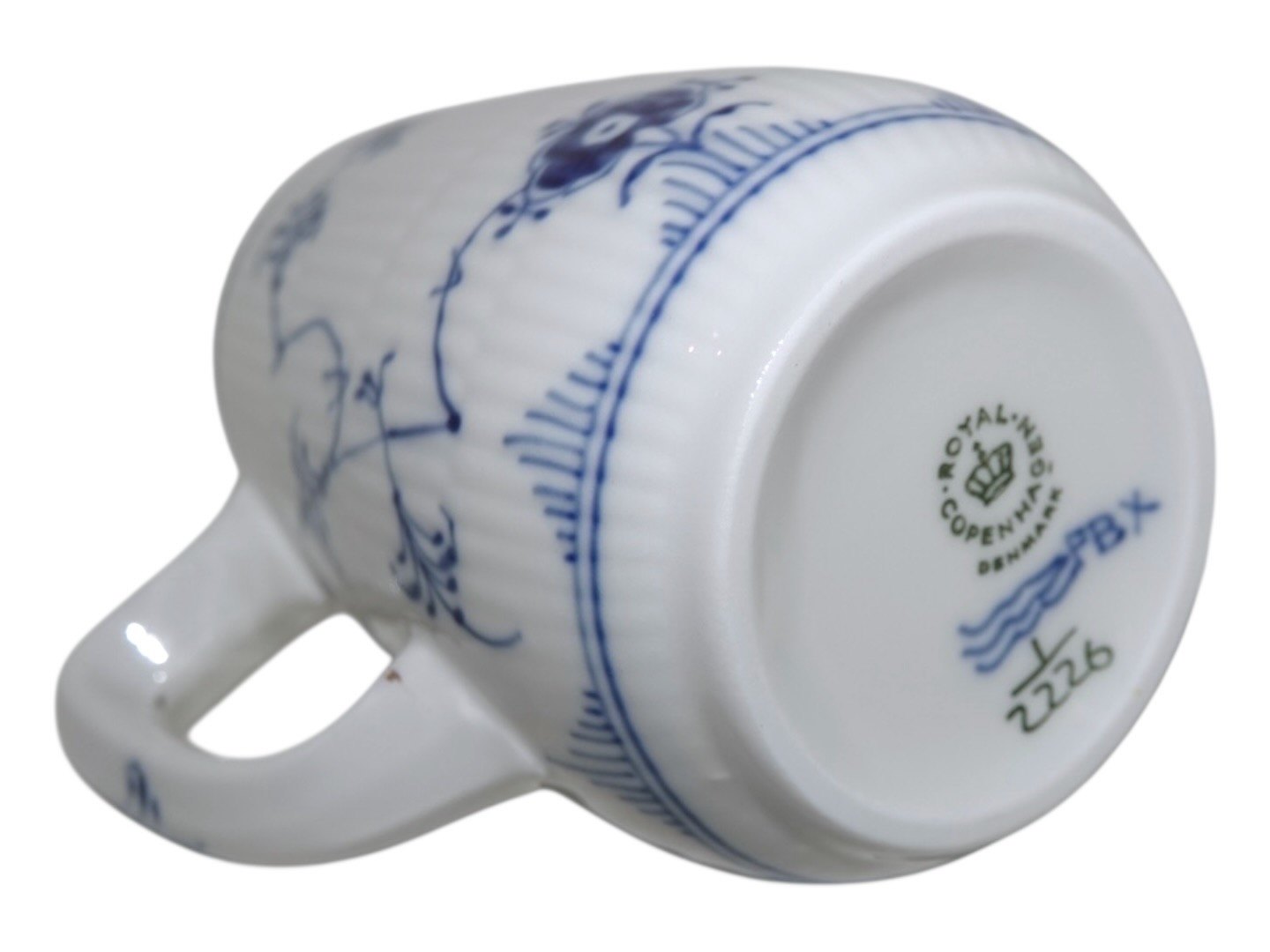 Royal Copenhagen Musselmalet Riflet i tykt jernporcelæn, flødekande.