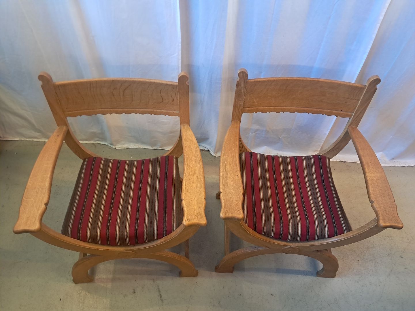 2 Armstole i massivt egetræ, fra 1980erne.