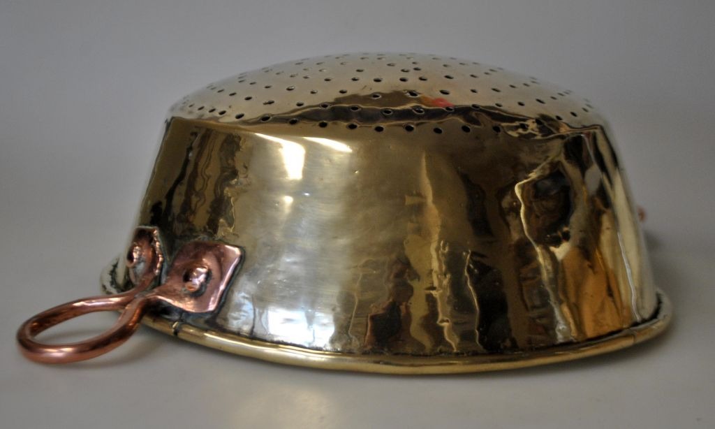 Dørslag i messing, 19. årh. Danmark. Med ører af kobber. Dia: 24,5 cm.