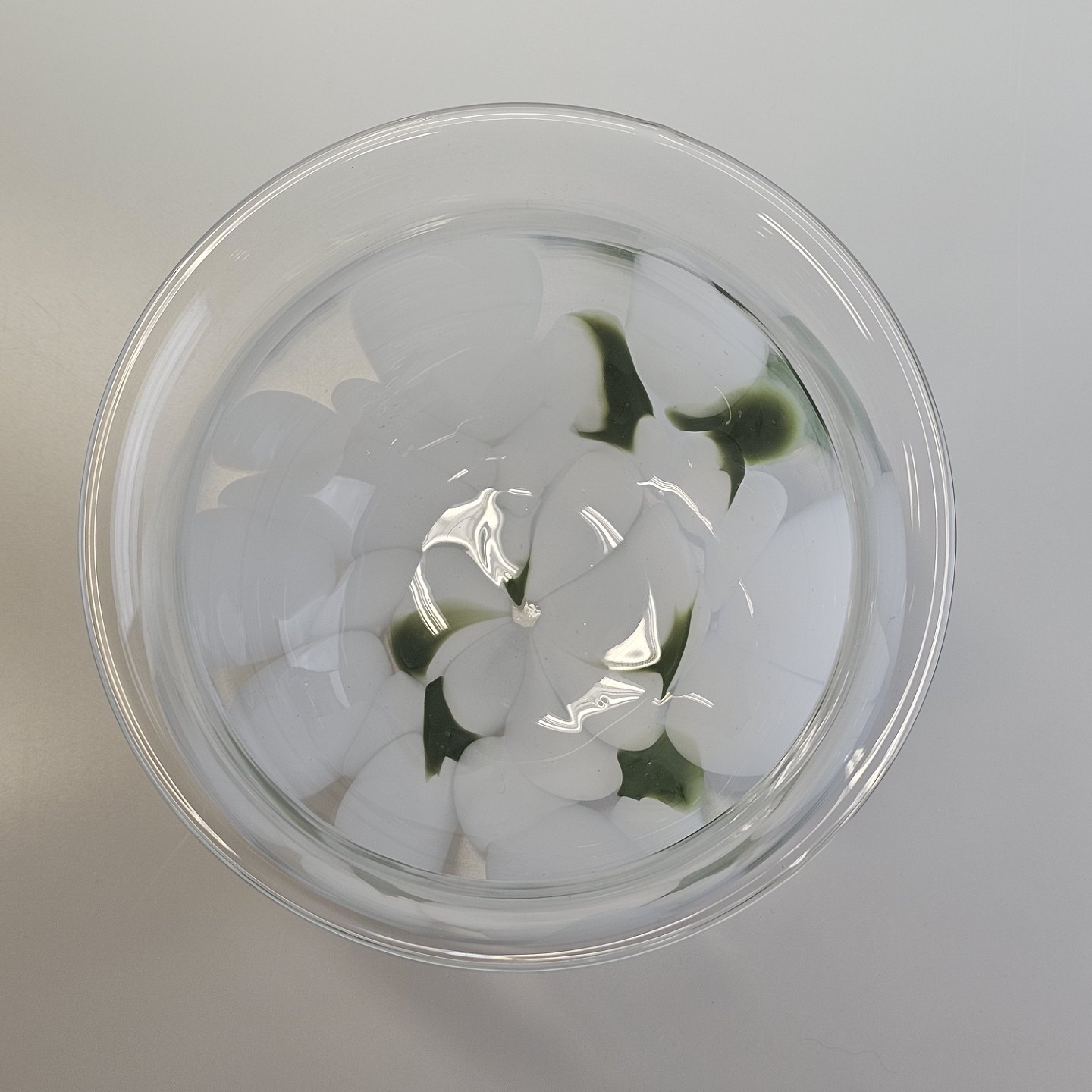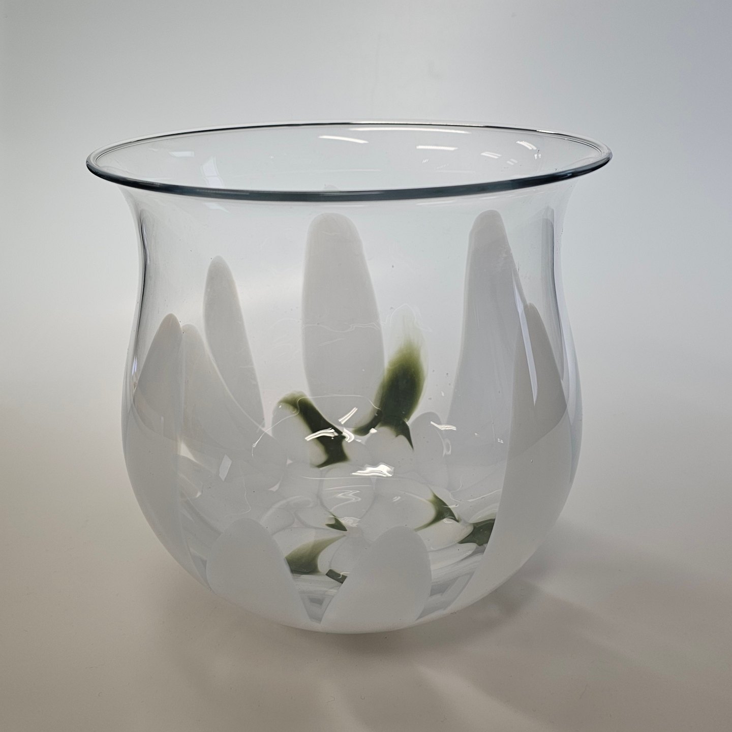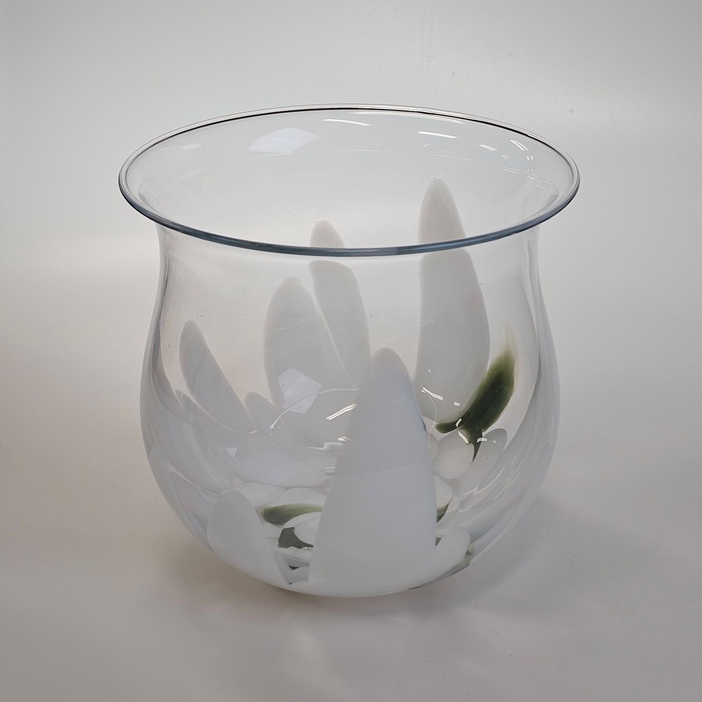Vase i glas med hvid dekoration, model Vintergæk