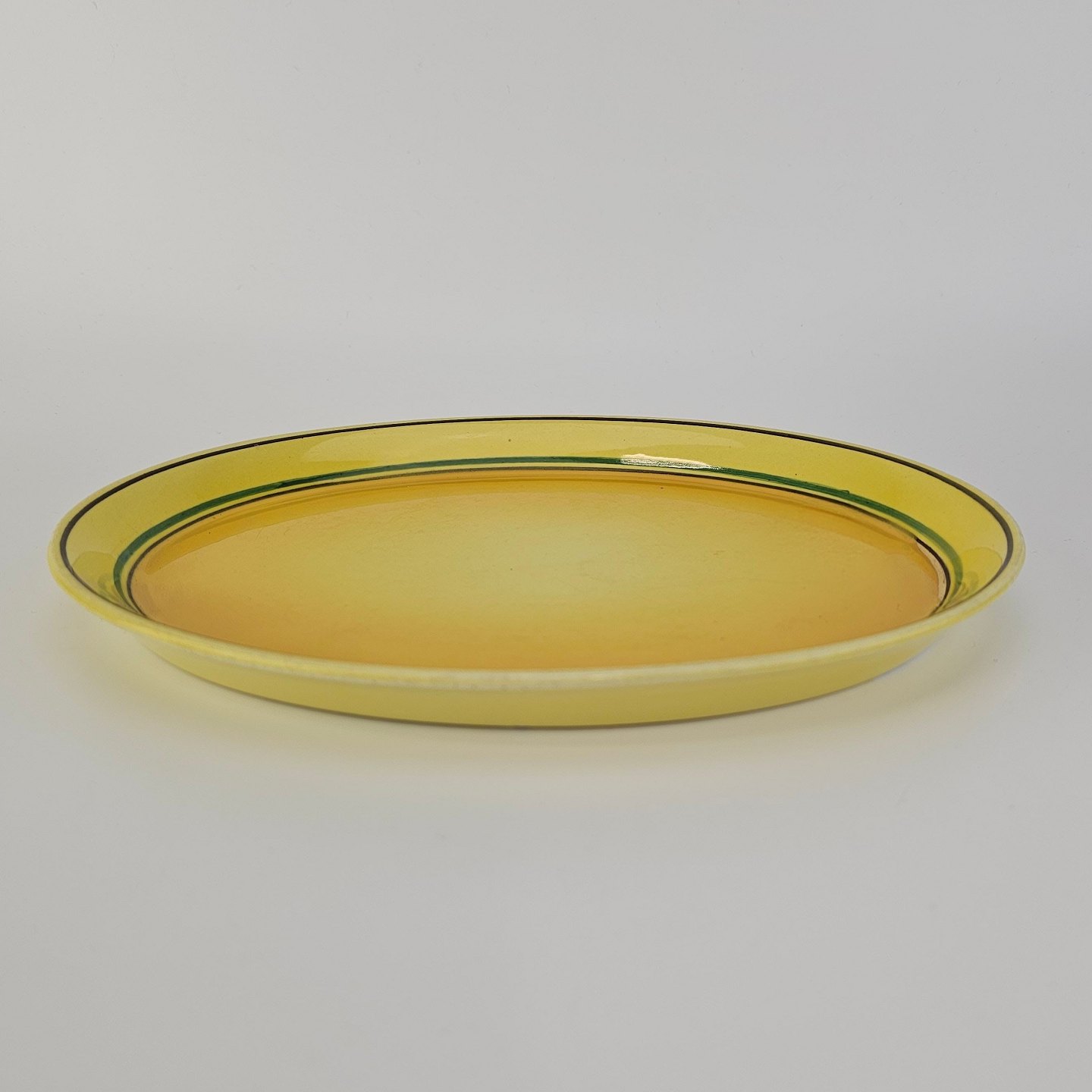 Ovalt fad i fajance fra stellet Gertrud fremstillet i perioden 1933-1939.