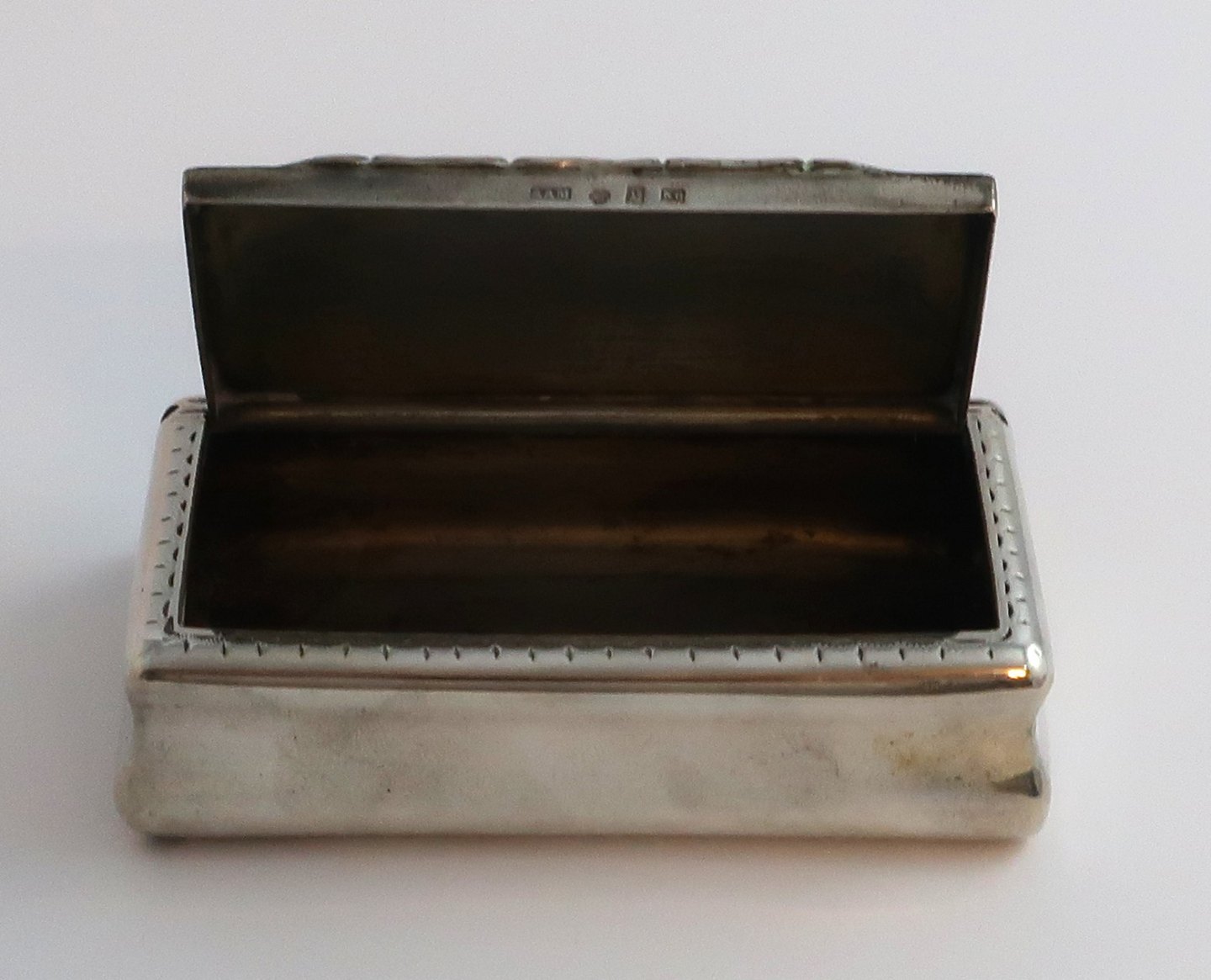 A.A.M, Sverige. Sølvboks (830). Længde 8 cm. Bredde 4 cm. Højde 2,2 cm. Produceret 1888 (K6)