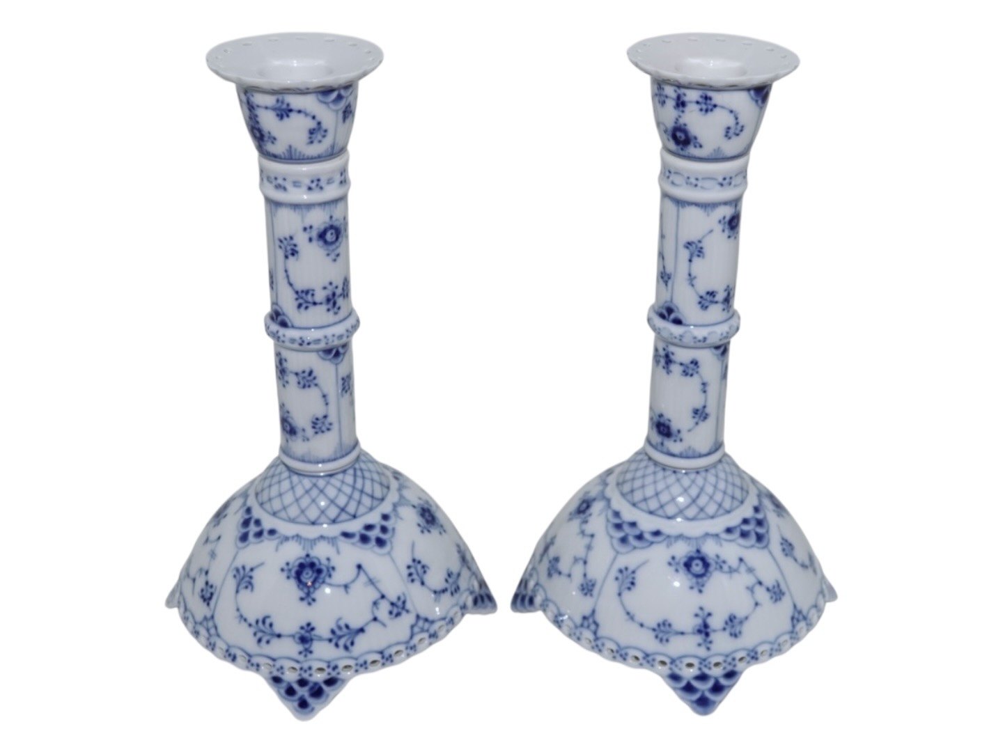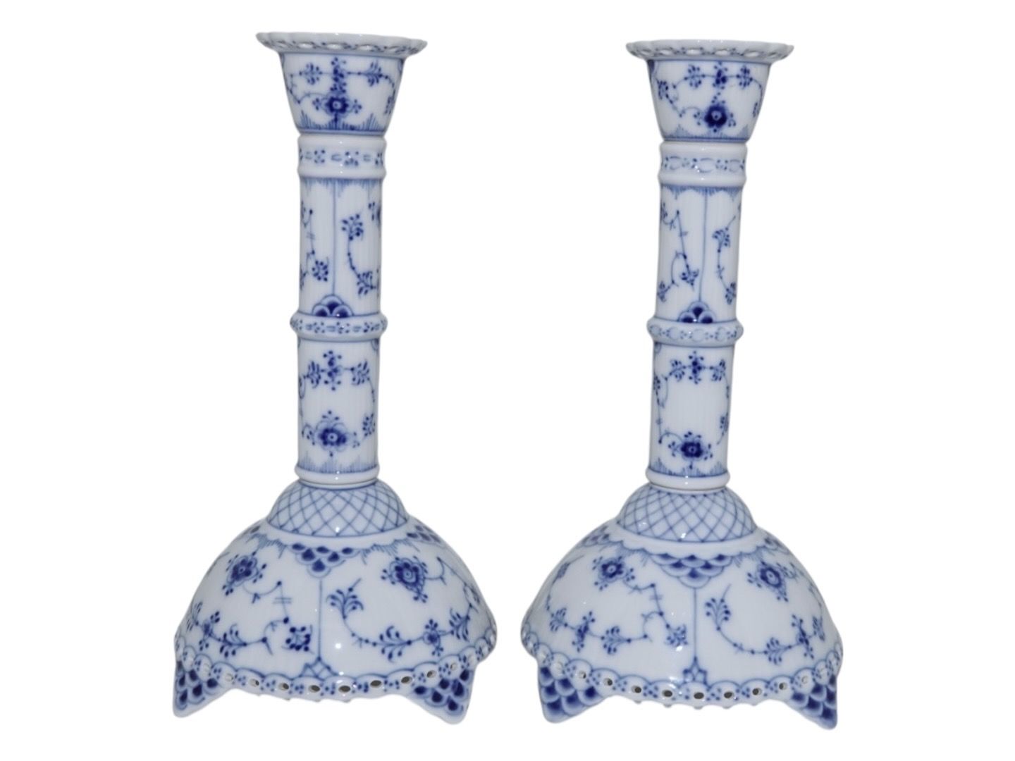 Royal Copenhagen Musselmalet Helblonde, to høje lysestager.