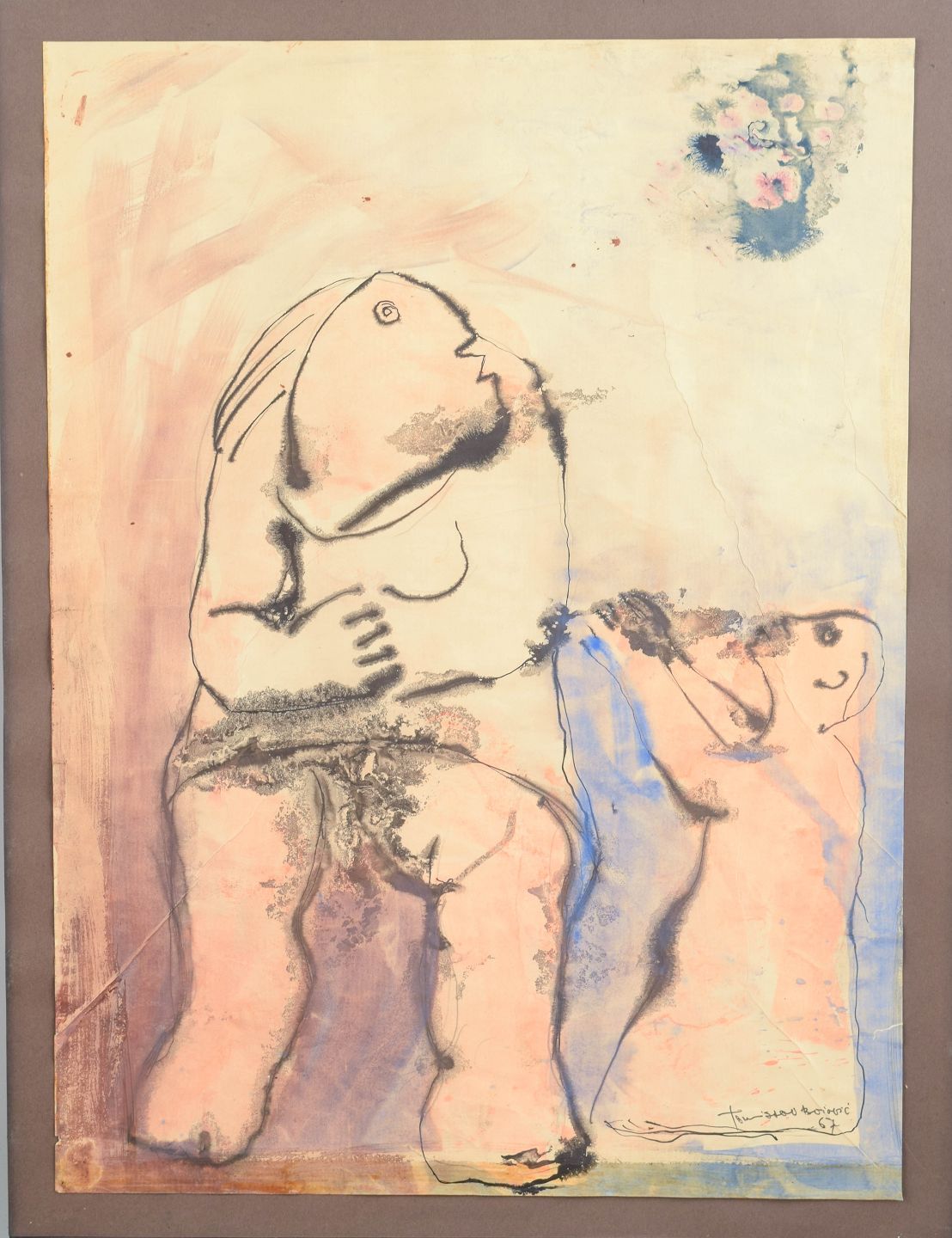 Naturalistisk motiv udført i akvarel på papir med fri og levende penselføring. Værket er signeret og dateret 1967 nederst i motivet.