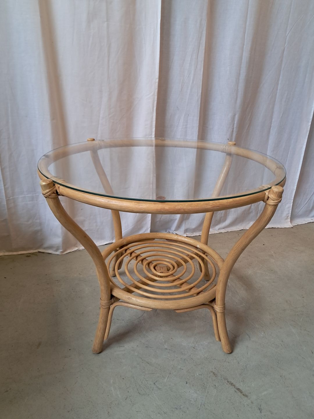 Bord i bambus med glasplade, fra 1990erne.