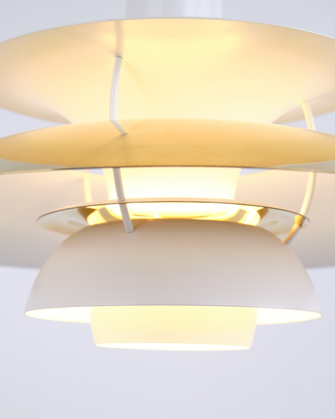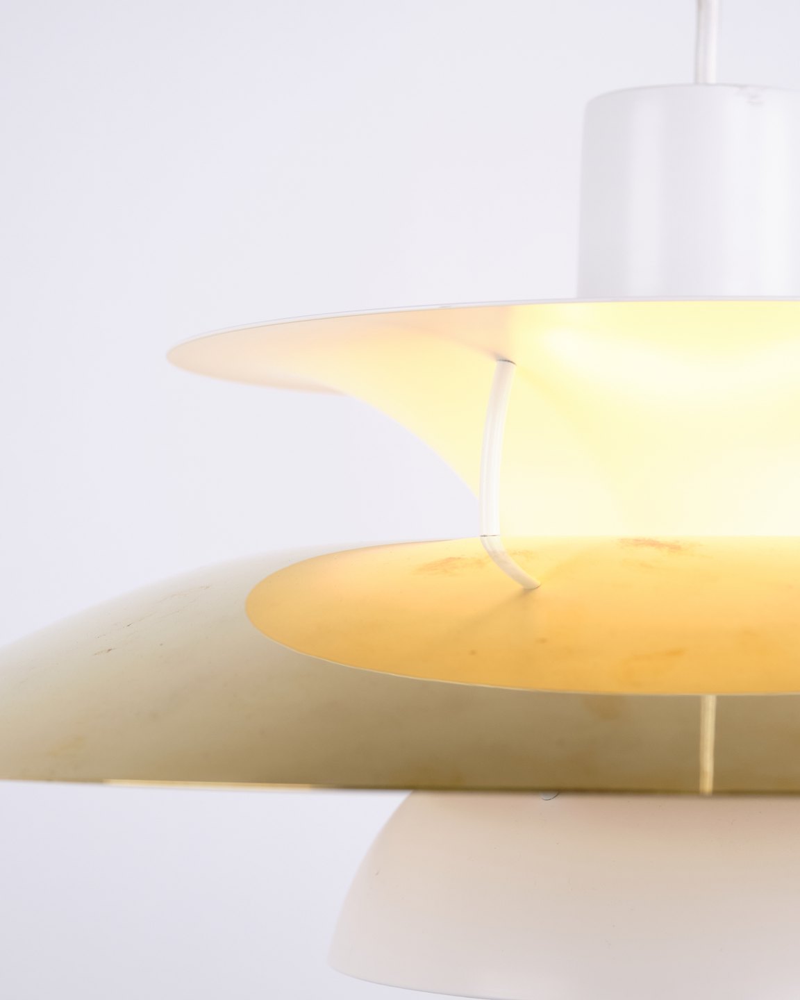 PH 5 pendel i messing fra Louis Poulsen designet af Poul Henningsen. Klassisk dansk lampe med blændfrit og funktionelt lys.