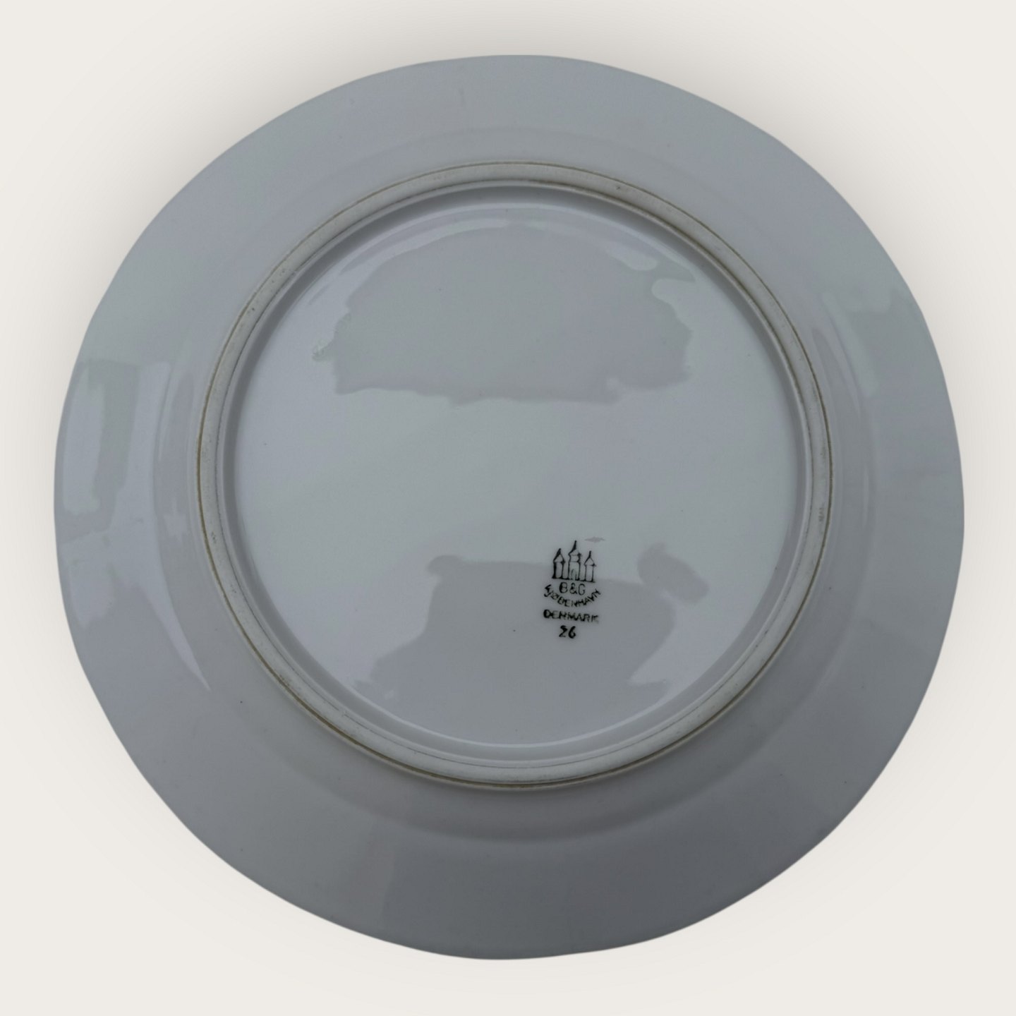 | Bing & Grøndahl, Hvid Offenbach, Frokost tallerken # 26, 21,5cm i diameter, 2.sortering *Pæn brugt stand*