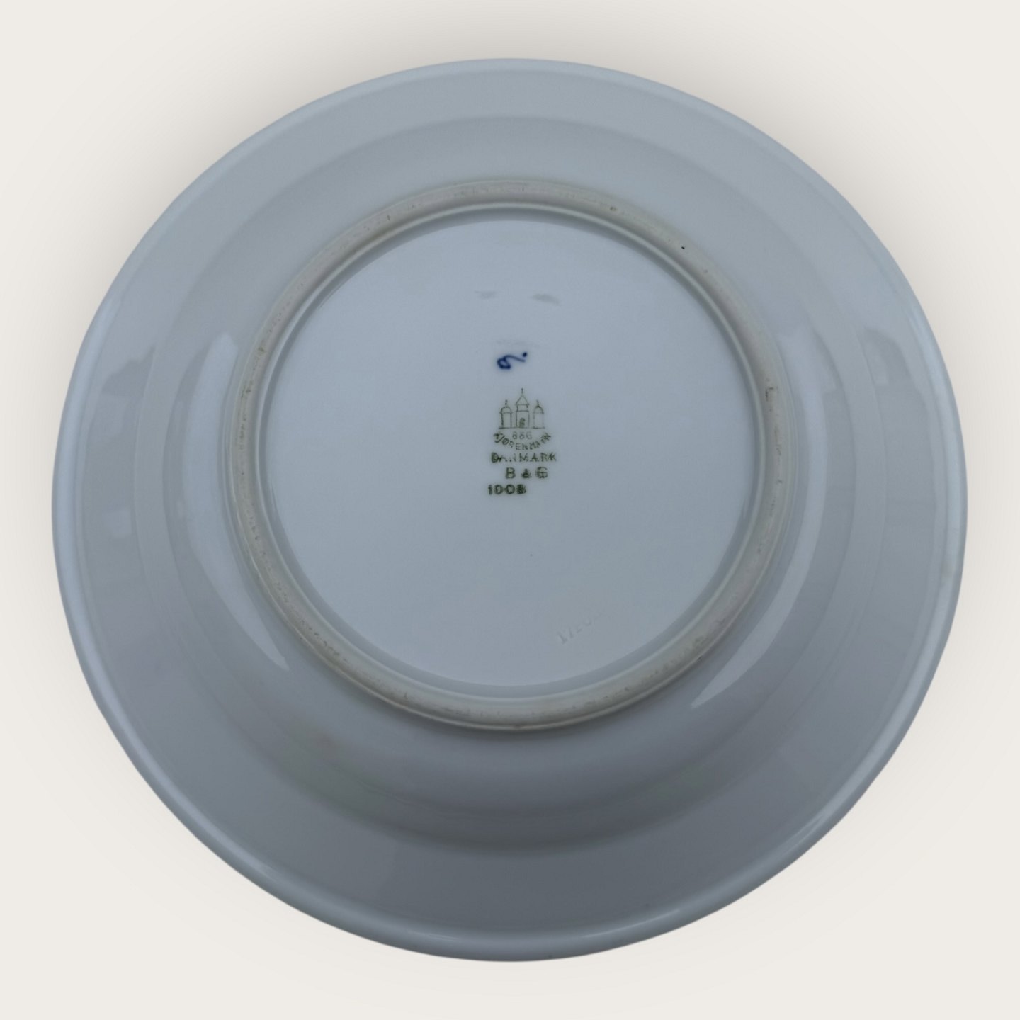 Bing & Grøndahl, Blå malet (Musselmalet), #1008, stor dyb tallerken i hotelporcelæn ( Jernporcelæn ) med logo fra Preislers Hotel, 25cm i diameter, 1. sortering * Pæn stand*