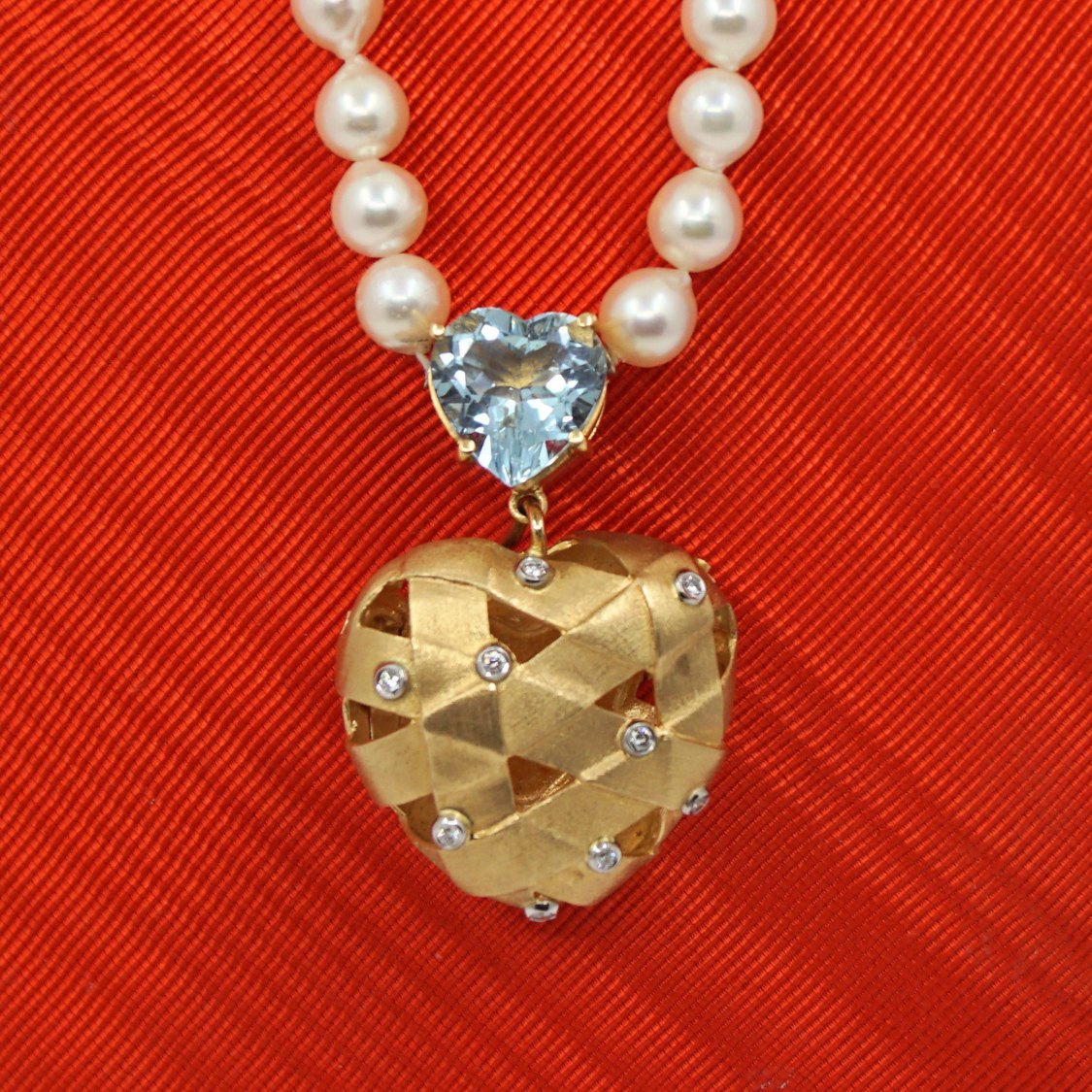 Ole Lynggaard; Smykkelås sammensat af to hjertelåse. Flettet hjertelås i 14 kt. guld med 9 diamanter. Samt hjertelås i 18 kt. guld med lyseblå sten.