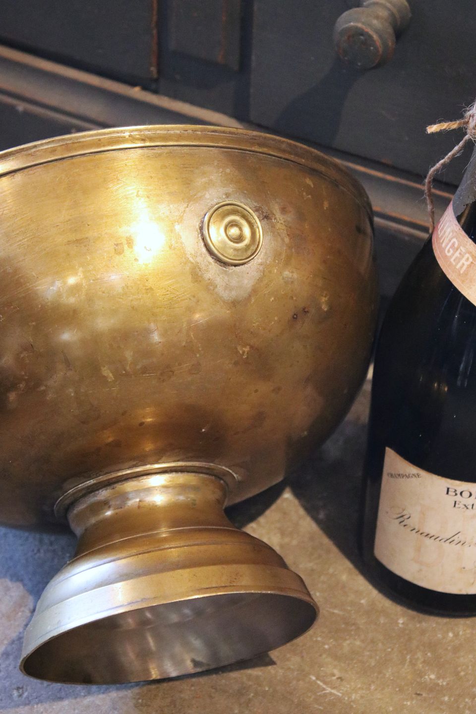 Gammel fransk champagnekøler i messing med en rigtig fin gammel patina...