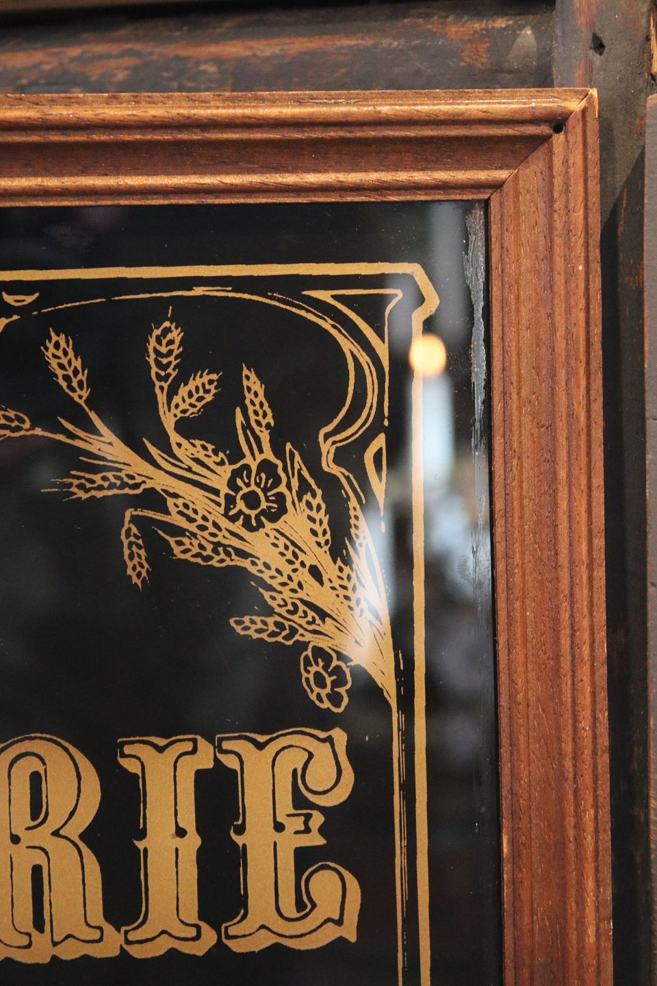 Reklame skilt fra en gammel fransk konditor / bageri , malet på glas "Boulagerie"...