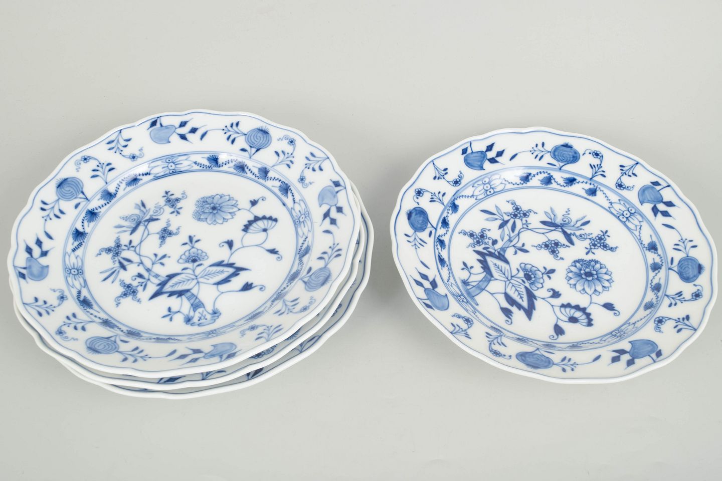 Meissen løgmønster, sæt af fire middagstallerkener.