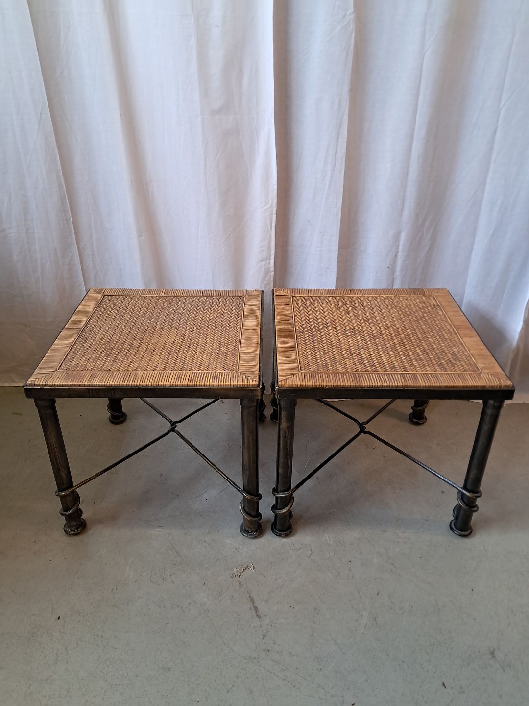 2 Lampeborde i metal og flet, fra 2000erne.