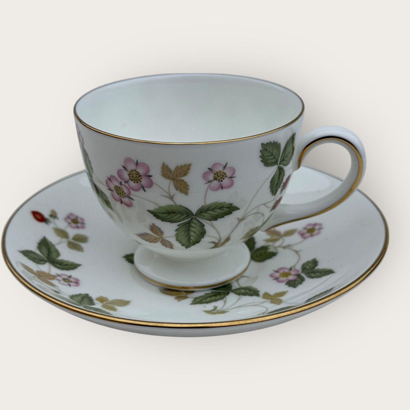 Wedgwood, Wild strawberry, kop med underkop, Mål kop: højde 6,5cm diameter 8,2cm *Perfekt stand*