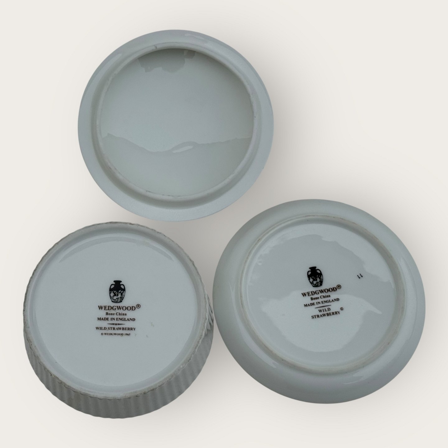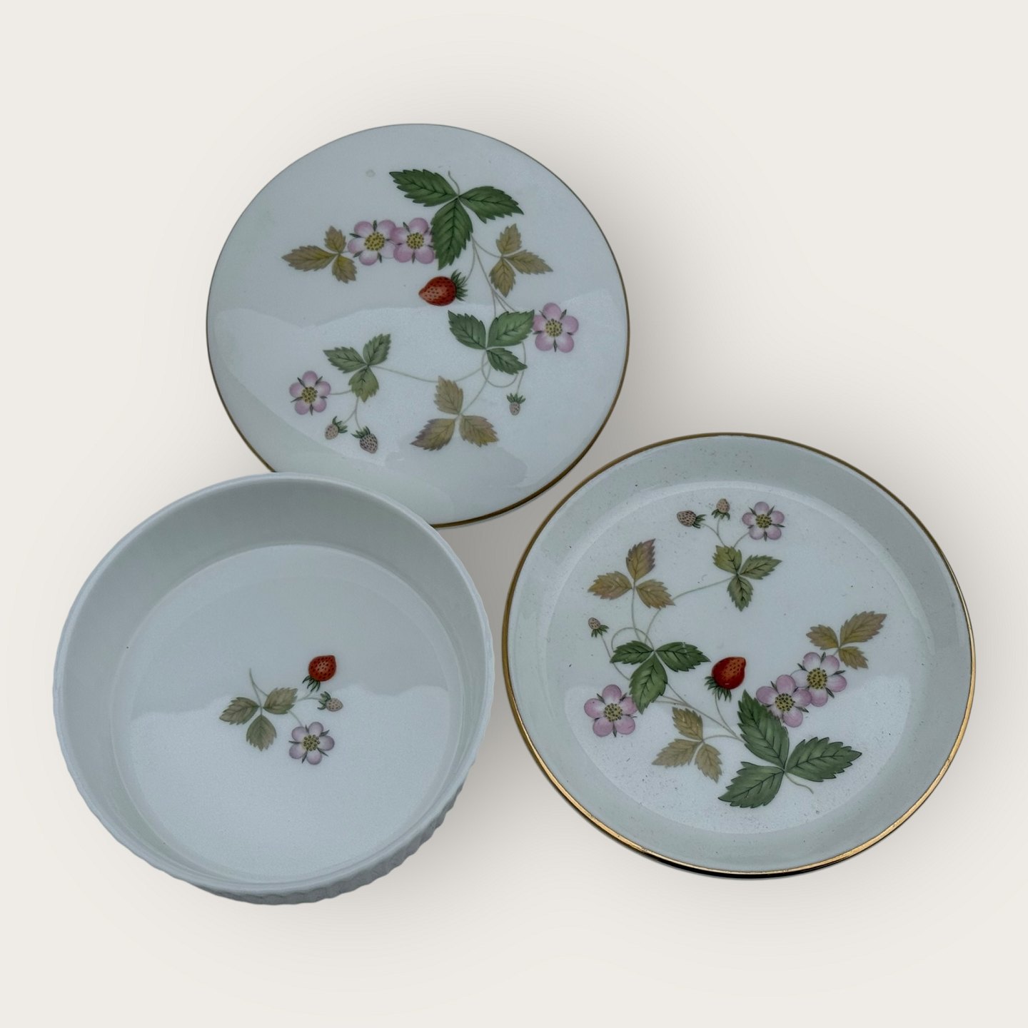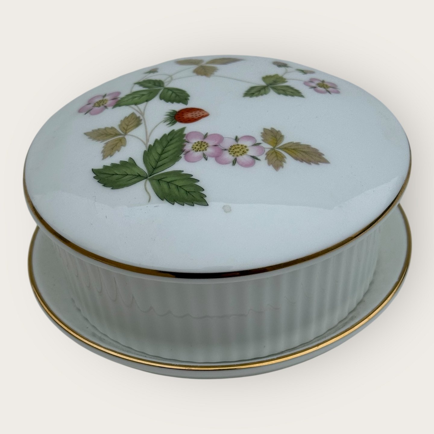 Wedgwood, Wild strawberry, Lille skål med låg og en underskål, diameter skål 9cm *Perfekt stand*
