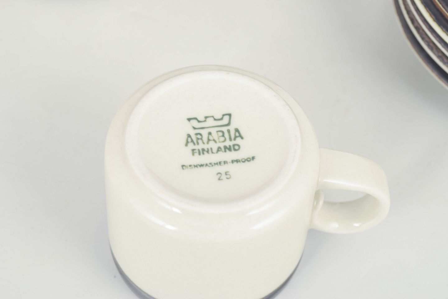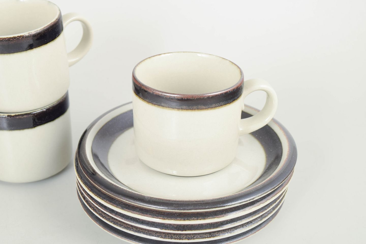 Arabia "Karelia", sæt af fem kaffekopper med tilhørende underkopper.