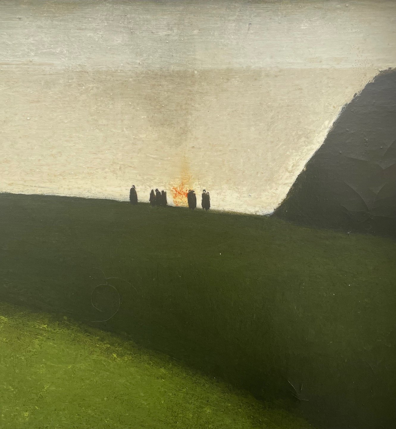 "Bålaften" stort flot oliemaleri i smal forgyldt ramme. Maleriet har været ved konservator og blevet renset og fået ny blændramme. Maleriet har været udstillet på Vejle Kunstmuseum.