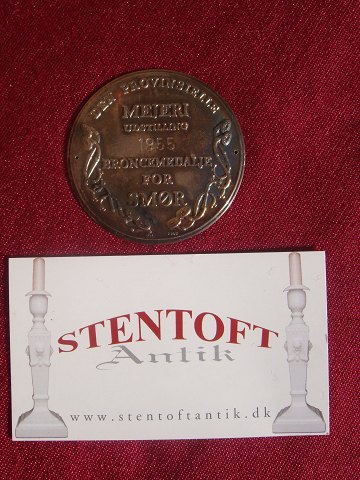 Broncemedalie for smør fra Den provinsielle Mejeri udstilling 1955 af sterllingsølv. Stemplet: EH 925 S