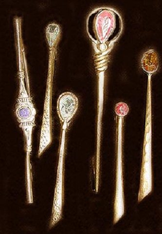 Guld og double, dekoreret med krystaller eller glas, 1870-1920