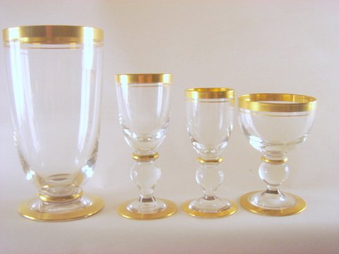 Holmegaard, Gyldenholm. Der kan være forskel på den brede guldkant, da guldet i nogle tilfælde bliver anløbet så det bliver mere bronzeagtig.