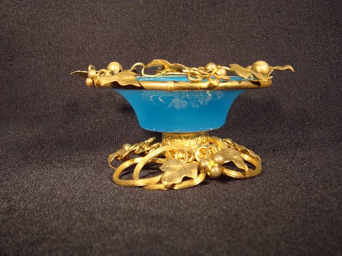 Fransk sukker opsats i blå Opalineglas med blomster i forgyldt Bronce