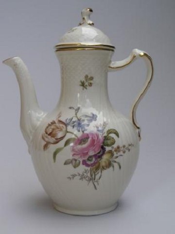 Royal Copenhagen,1994-910 Kaffekande 110 cl, Frijsenborg Blomstermotiv på svejfet stel med guldkant