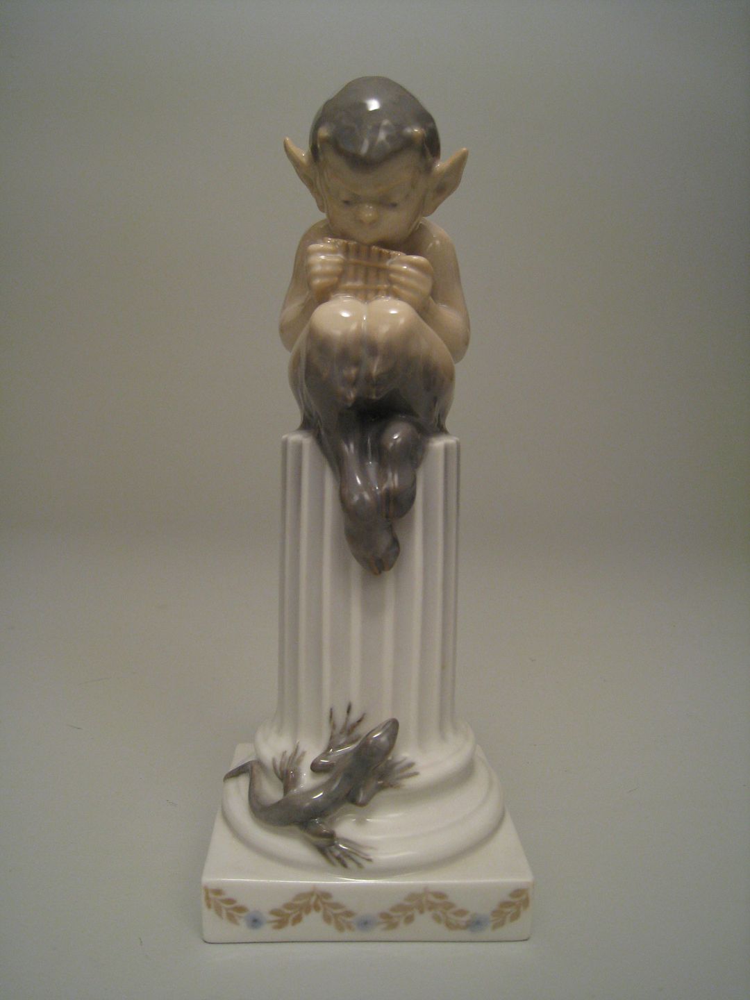 Royal Copenhagen, 433 Pan på søjle med firben, Chr. Thomsen, 1.sort, h-21