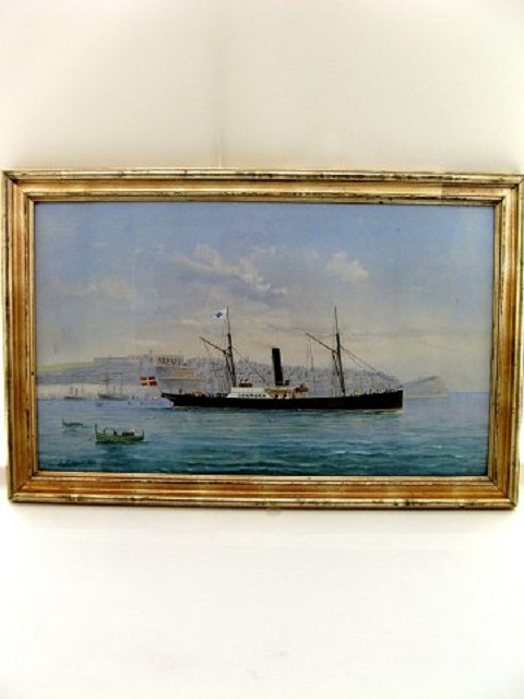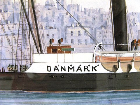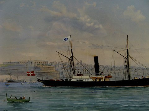Gouache af dampskibet S/S Danmark sign. G.D'Esposito 1898
