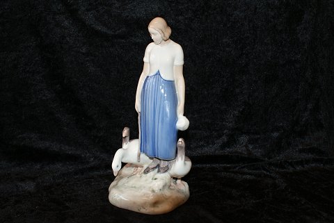 Bing & Grøndahl Figur af Gåsepige, den store model med tre Gæs.