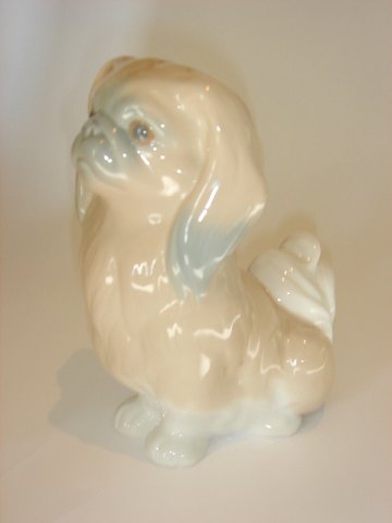 Lladro spansk kongelig porcelæn, Pekingeser. Højde 15 cm. Har en lille brændingsrevne (2 mm) ved det ene bagben. Pris: 1050 kr.