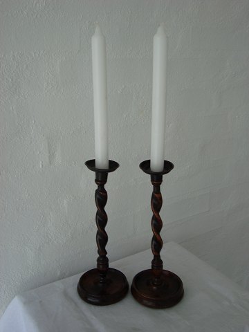 Par Victorianske lysestager med snoede stammer.